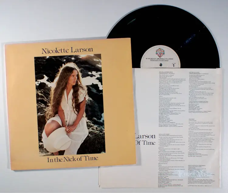 In the Nick of Time was much more highly polished than Nicolette Larson's first album. Nicolette Larson is backed up by a crack team of L.A. studio musicians and Larson had a Top 40 hit with her Michael McDonald duet, Let Me Go, Love (No. 35 Hot 100, No. 9 A/C). Her styles have broadened even more on the album to include '40s dance tunes alongside Motown sure-fire hits and '50s rockin' – there is plenty of fine listening in store. Larson co-wrote the title cut with help by such stellar friends as Karla Bonoff and Michael McDonald.