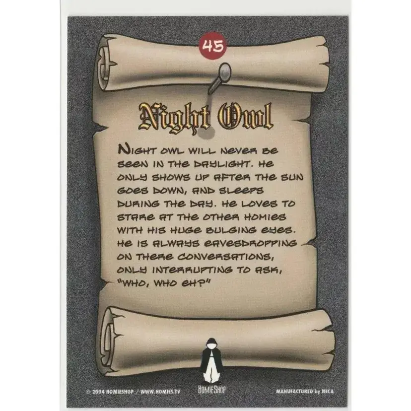 Night Owl #45 Homies Swap Cards 2004 NECA Lowrider Chicano Barrio East LA Culture trading card