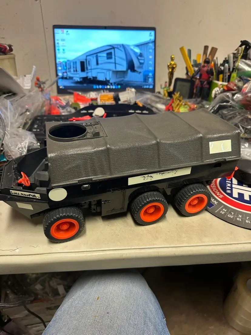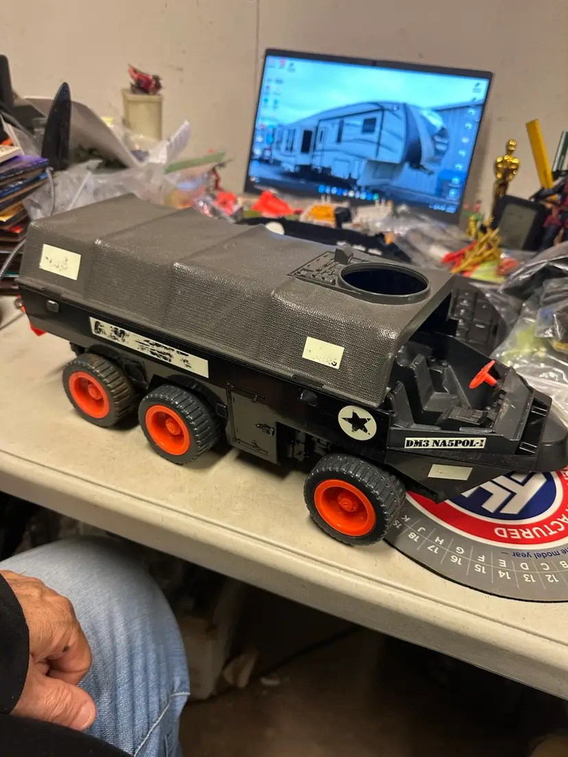 Broken tabs on canopy. Includes steering wheel and bottom shell unbroken. Great starter piece.