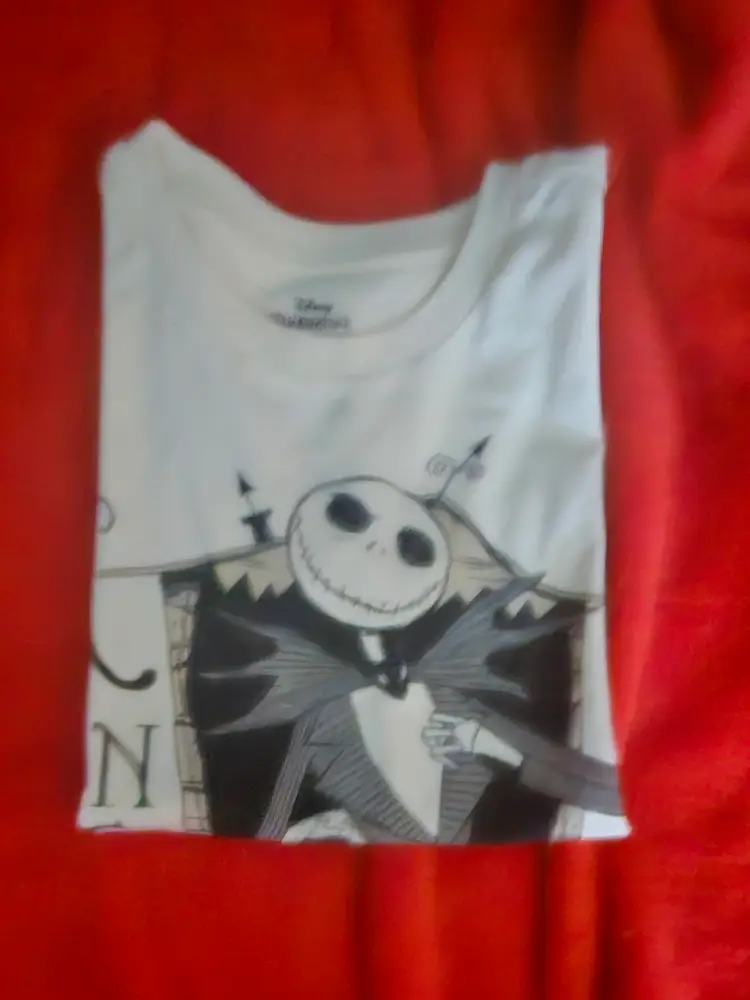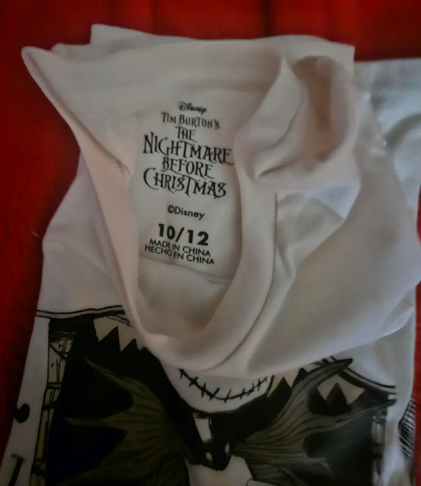 The Nightmare Before Christmas King Jack T-shirt in size 10/12 features a solid multicolor design with a crew neck and short sleeves, perfect for the summer, fall, and spring seasons. Made of cotton, this regular fit shirt is machine washable and part of the Disney brand's character family. Ideal for boys, this Christmas-themed t-shirt is a fun and stylish addition to any young fan's wardrobe.