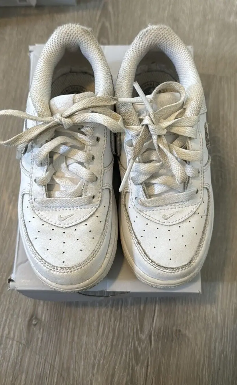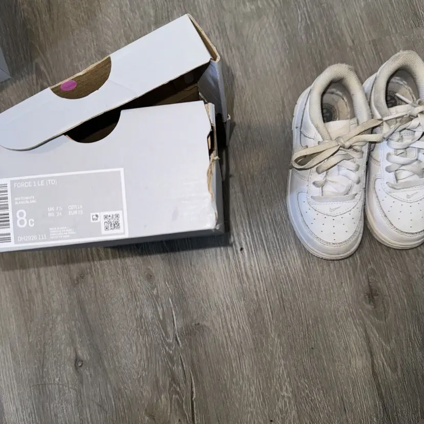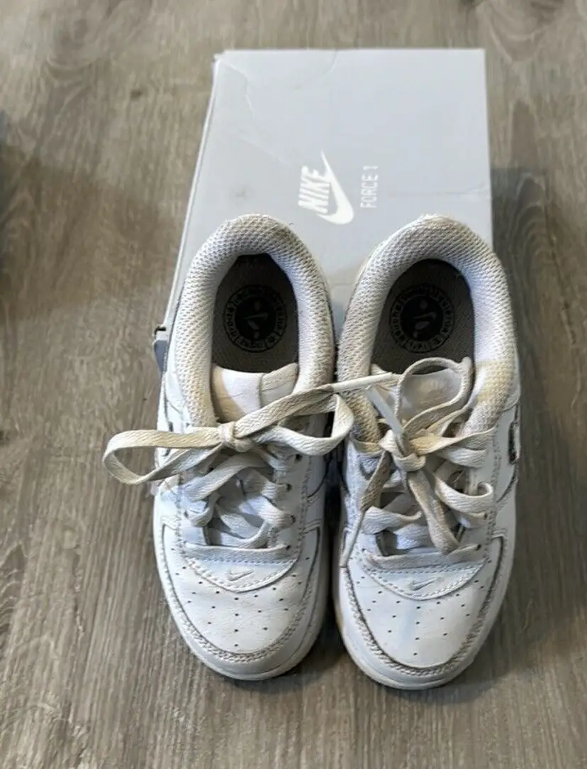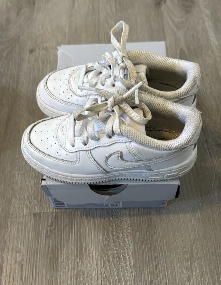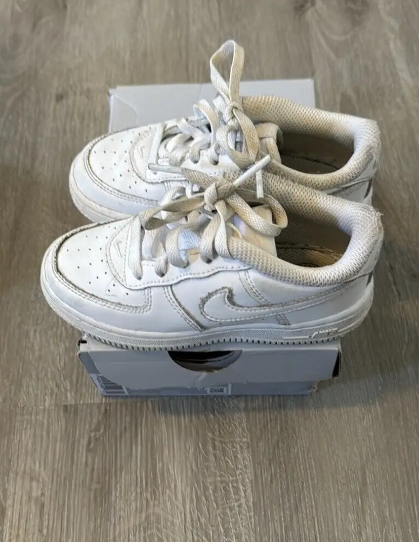 Closure: Lace Up US Shoe Size: 8C Occasion: Activewear, Casual Year Manufactured: 2022 Fabric Type: Blended Fabric Accents: Logo Vintage: No Personalize: No Cushioning Level: Moderate Department: Unisex Baby & Toddler Style: Sneaker Outsole Material: Rubber Features: Comfort, Cushioned Season: Fall, Spring, Summer, Winter Handmade: No UK Shoe Size: 7.5 Shoe Shaft Style: Low Top Pattern: Solid Character: N/A EU Shoe Size: 25 Color: White Lining Material: Fabric Brand: Nike Type: Athletic Model: Nike Air Force 1 Theme: Athleisure, Classic, Sports Shoe Width: Standard Upper Material: Leather Country/Region of Manufacture: India Insole Material: Foam Performance/Activity: Basketball, Gym & Training, Running & Jogging, Walking Product Line: Nike Air Force 1