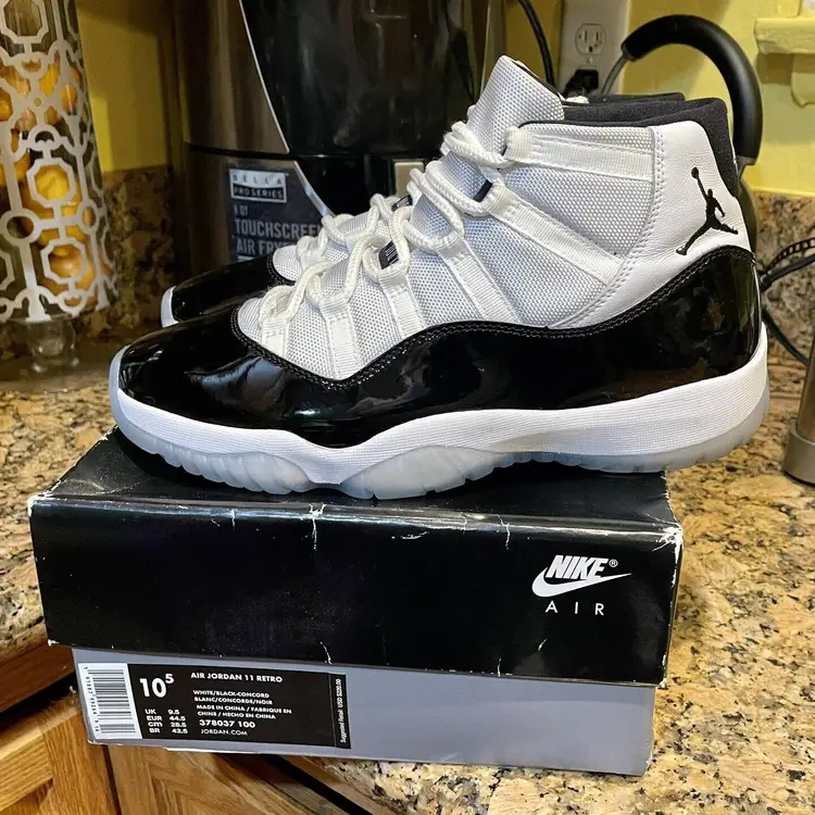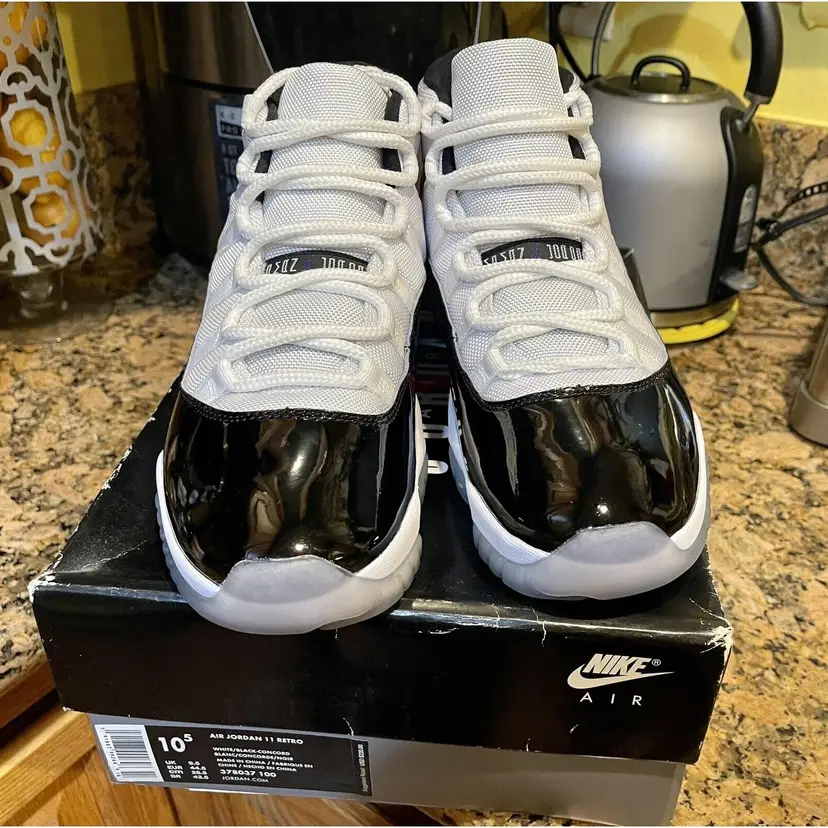Featuring a multicolor design and the famous silhouette of the Jordan 11 Retro Concord 2018, this athletic shoe is perfect for any occasion. The brand is Nike, the department is men, and the style is a sneaker. Don't miss out on your opportunity to own this amazing piece of footwear history.