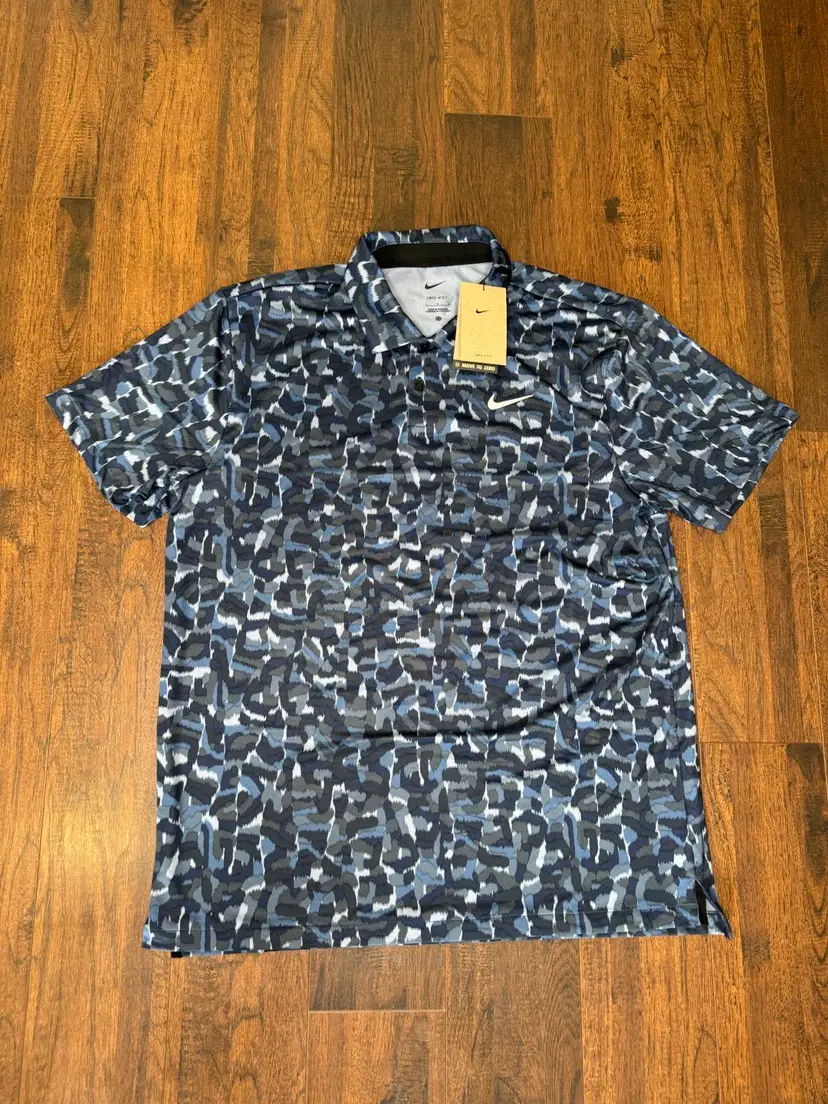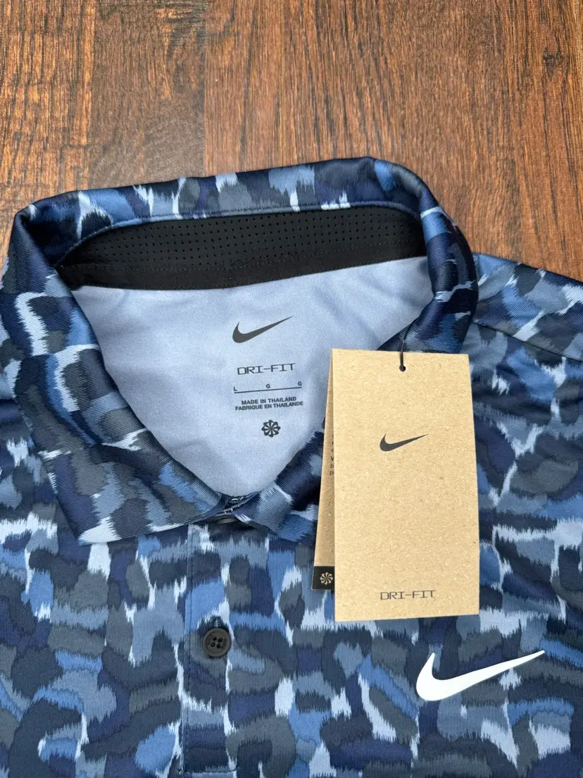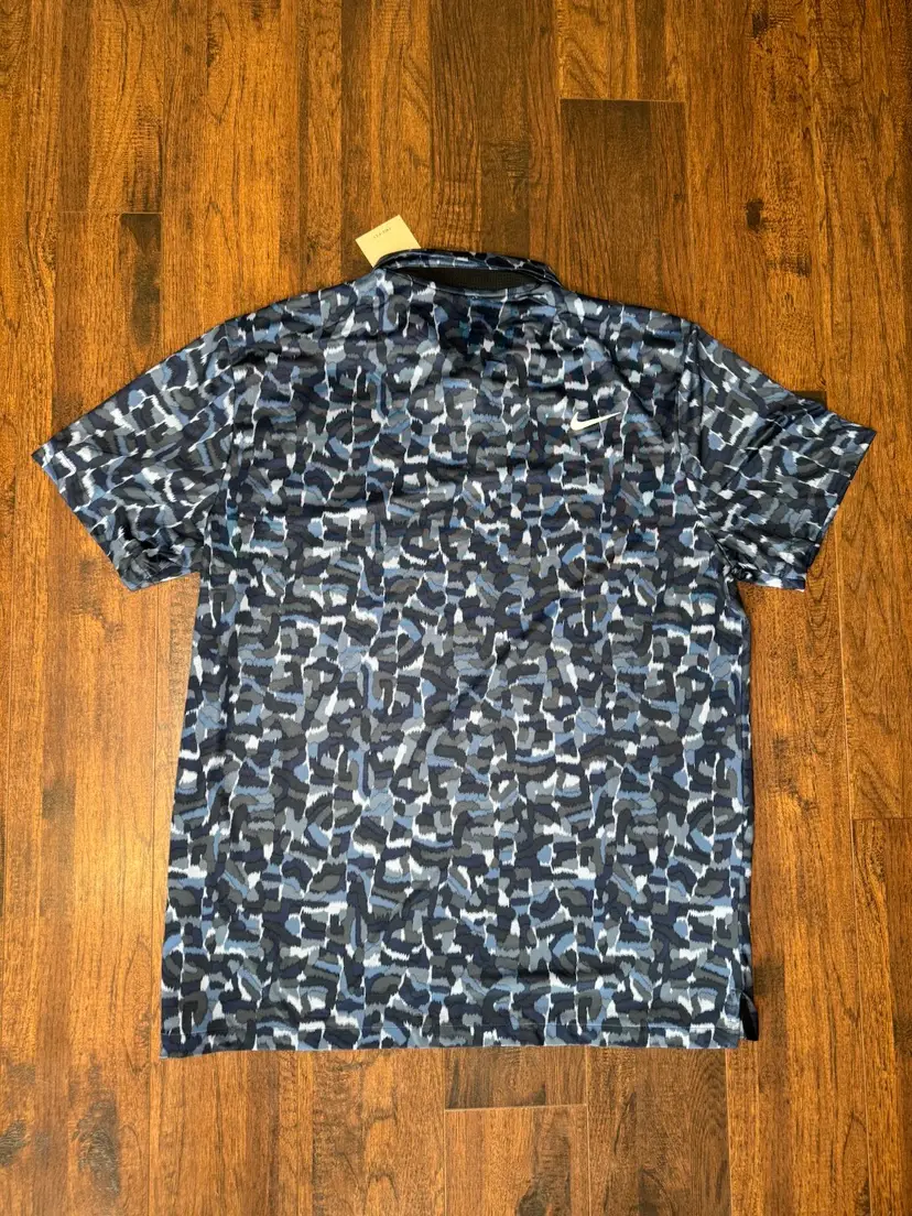 Nike Dri-FIT Tour Golf Polo Short Sleeve Confetti Print Blue FD5939-493 Mens Lg