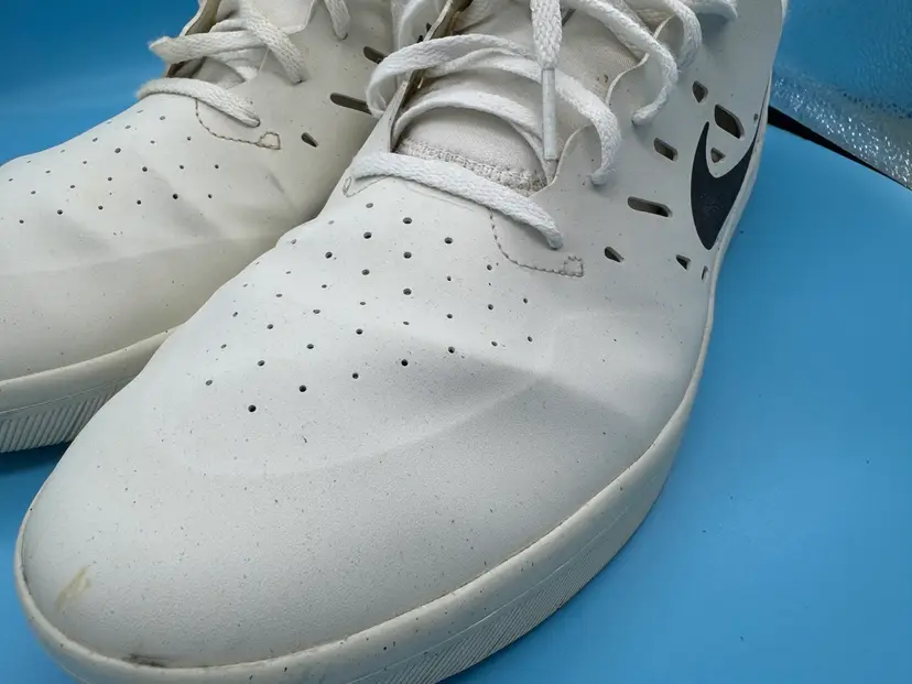 There is a more noticeable scuff on the toe and the shoes appear to have a speckle, not sure if that’s intended