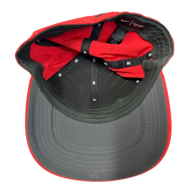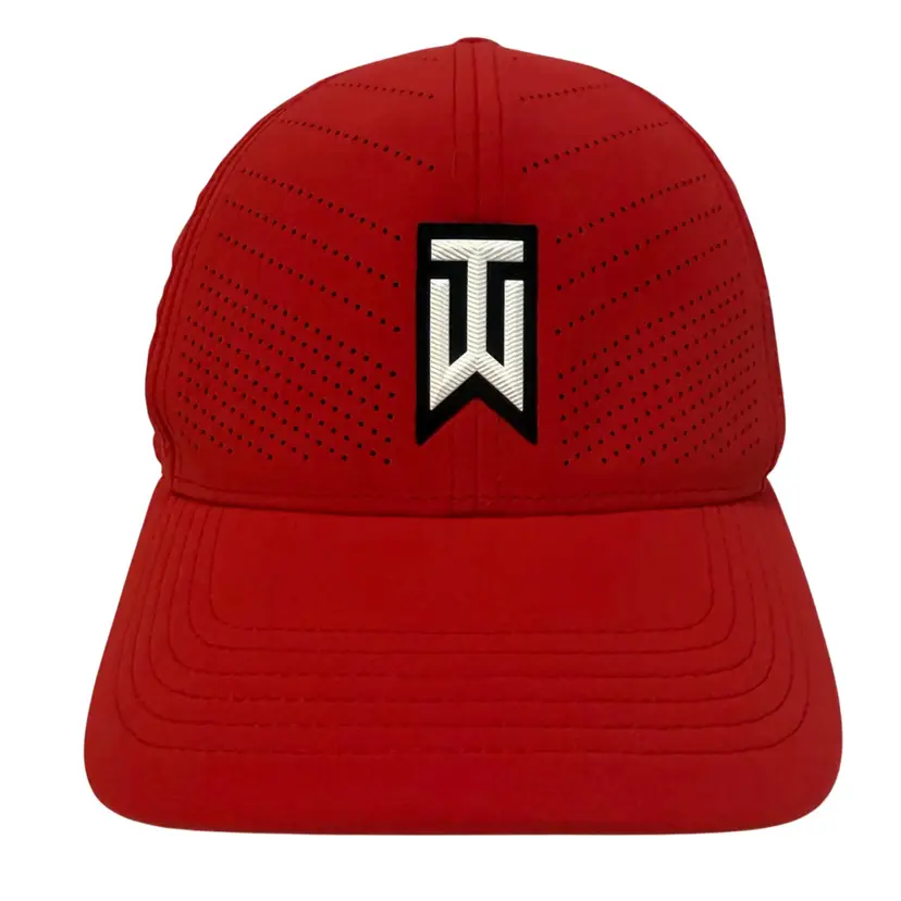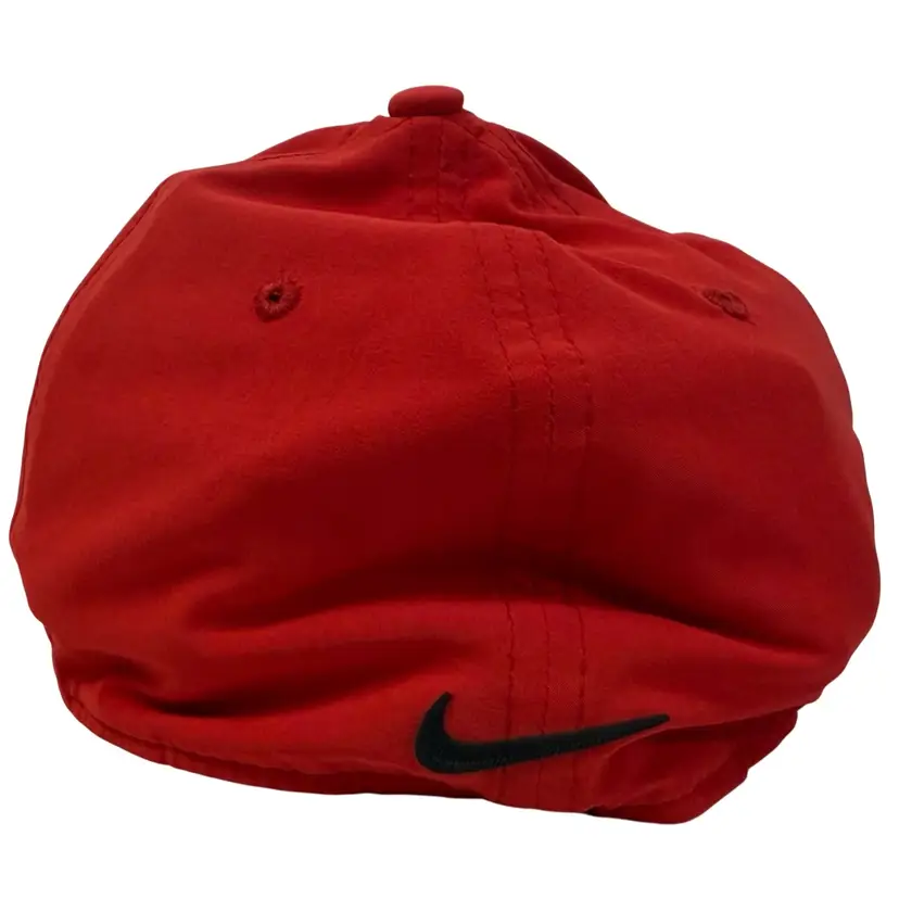 The Nike Tiger Woods Red Sunday Performance Flex Heritage 86 Golf Fitted Hat in size M/L is a stylish and functional golf accessory perfect for both activewear and casual occasions. Made from a blended polyester and spandex material, this lightweight and breathable hat features embroidered accents and logos, showcasing the iconic Tiger Woods design. With a solid red color and a classic golf theme, this hat is a must-have for any golf enthusiast looking to elevate their style on the course. Whether you're hitting the links in the winter, summer, fall, or spring, this hat is sure to provide comfort and performance.