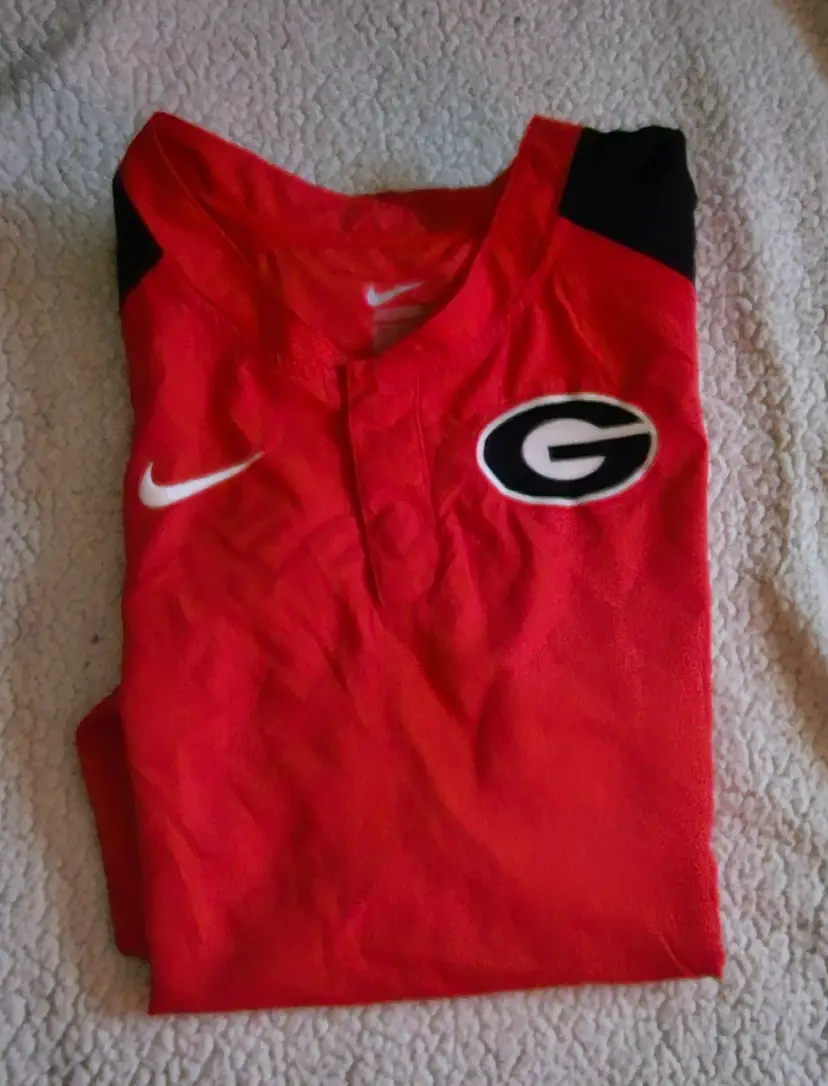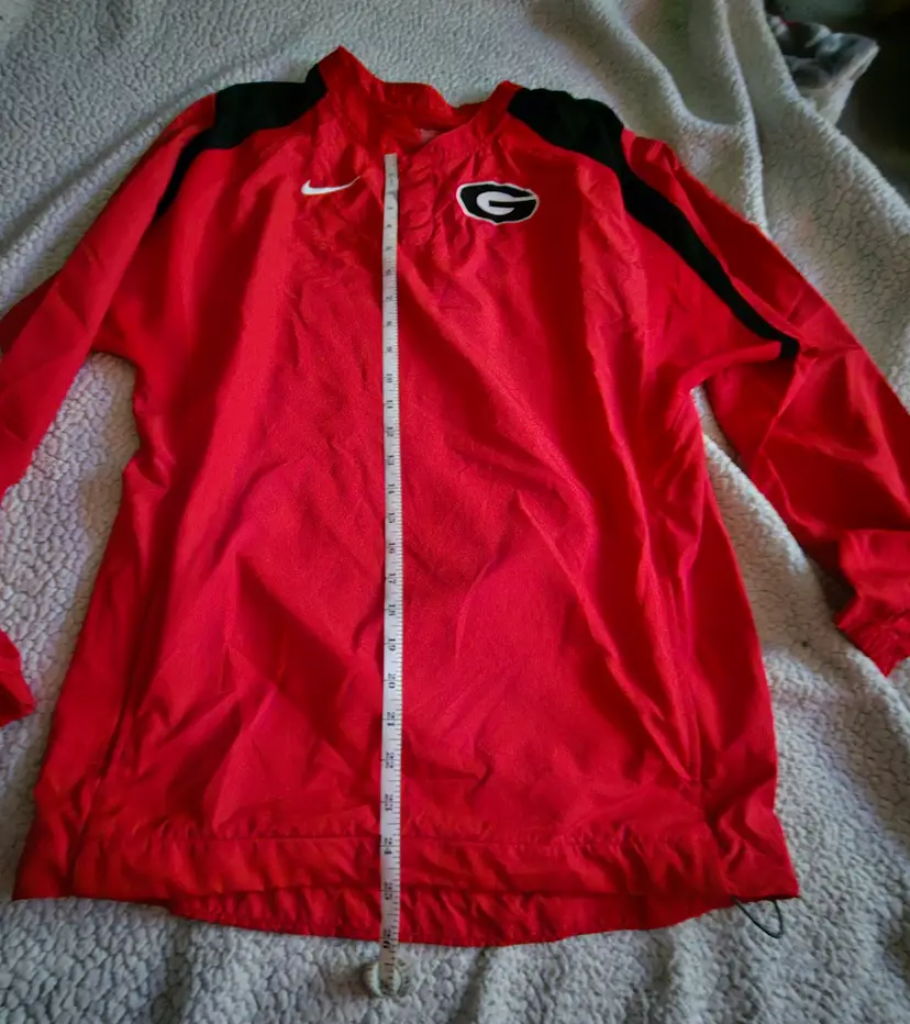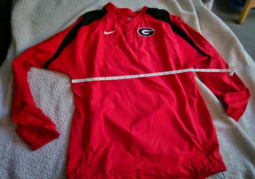 The Nike University Georgia Bulldogs Windbreaker in size XS is a stylish and practical jacket for men, perfect for the fall, winter, and spring seasons. Made of 100% polyester with a polyester insulation material, this pullover windbreaker features long sleeves and a regular fit. The jacket comes in a bold red color, with the Nike brand and University of Georgia Bulldogs theme incorporated into the design. Machine washable and suitable for activewear, this windbreaker is a must-have for any fan of the Bulldogs or Nike apparel.