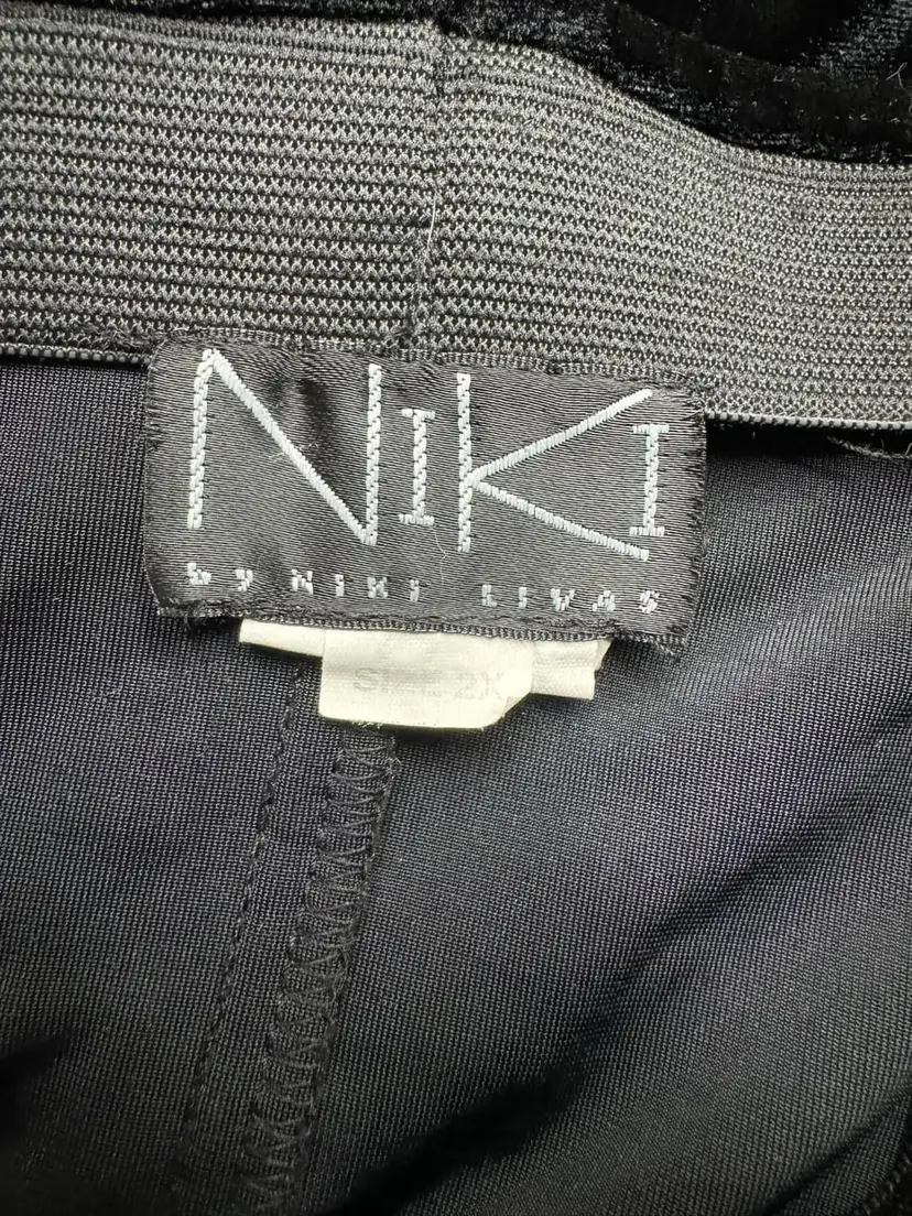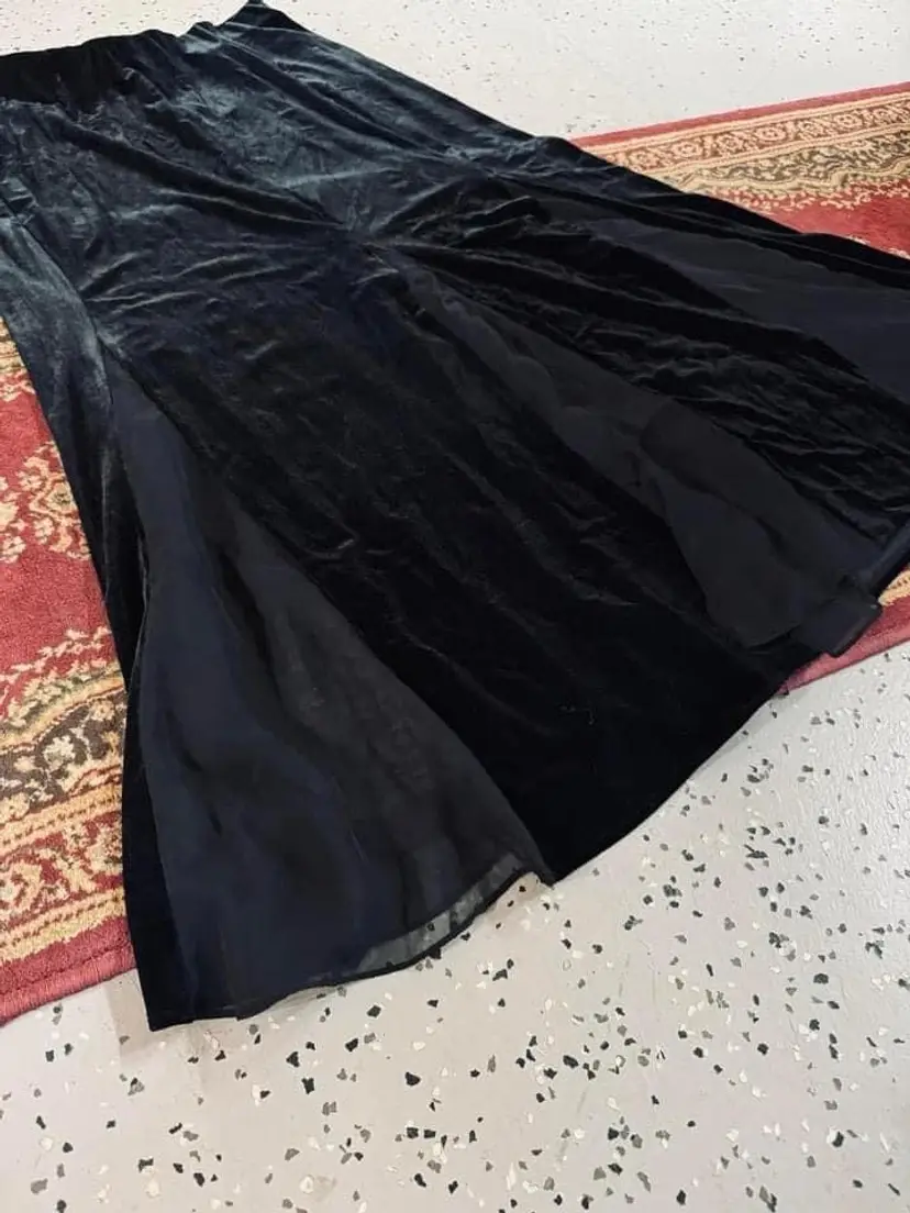 Waist is elastic and measures 18” across 40.5” long