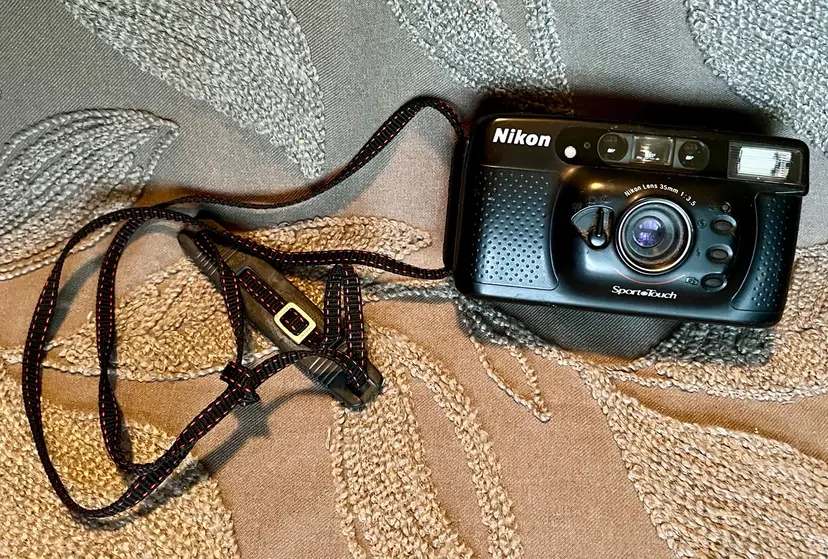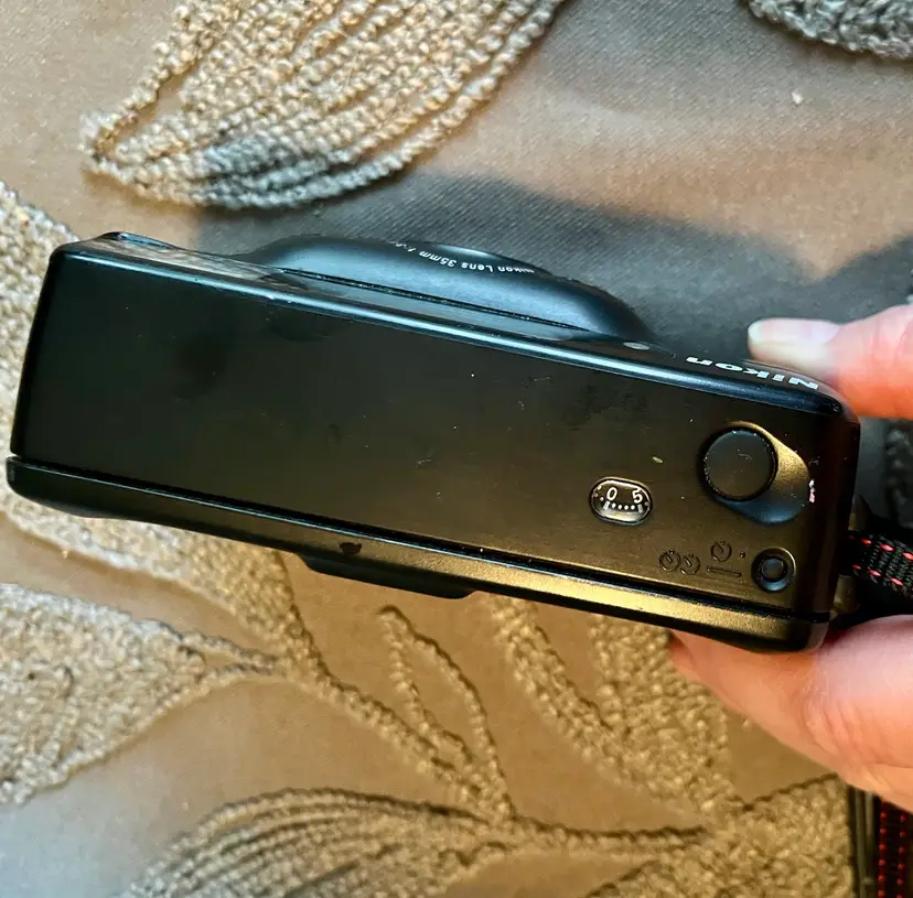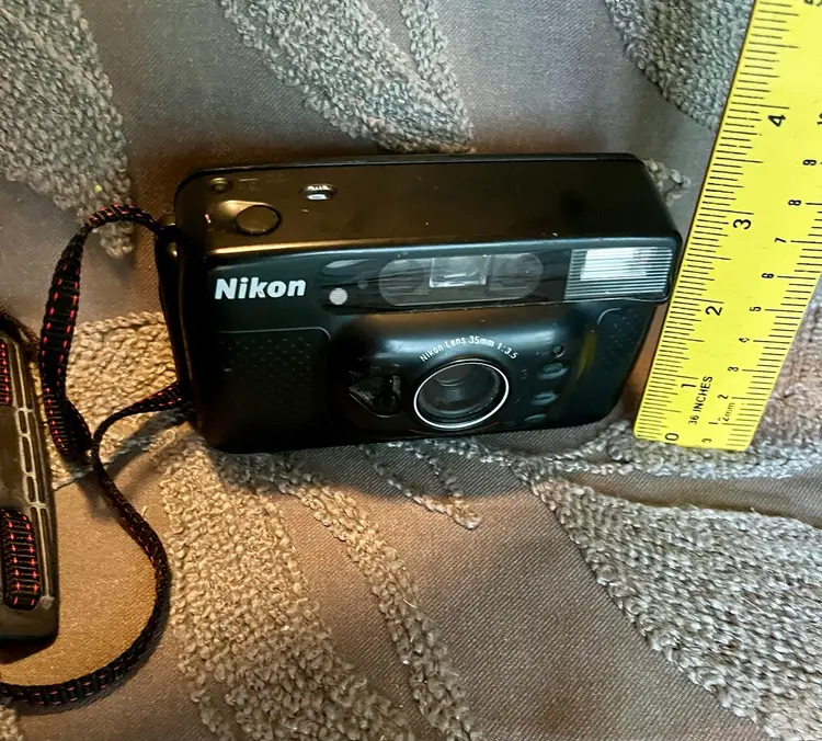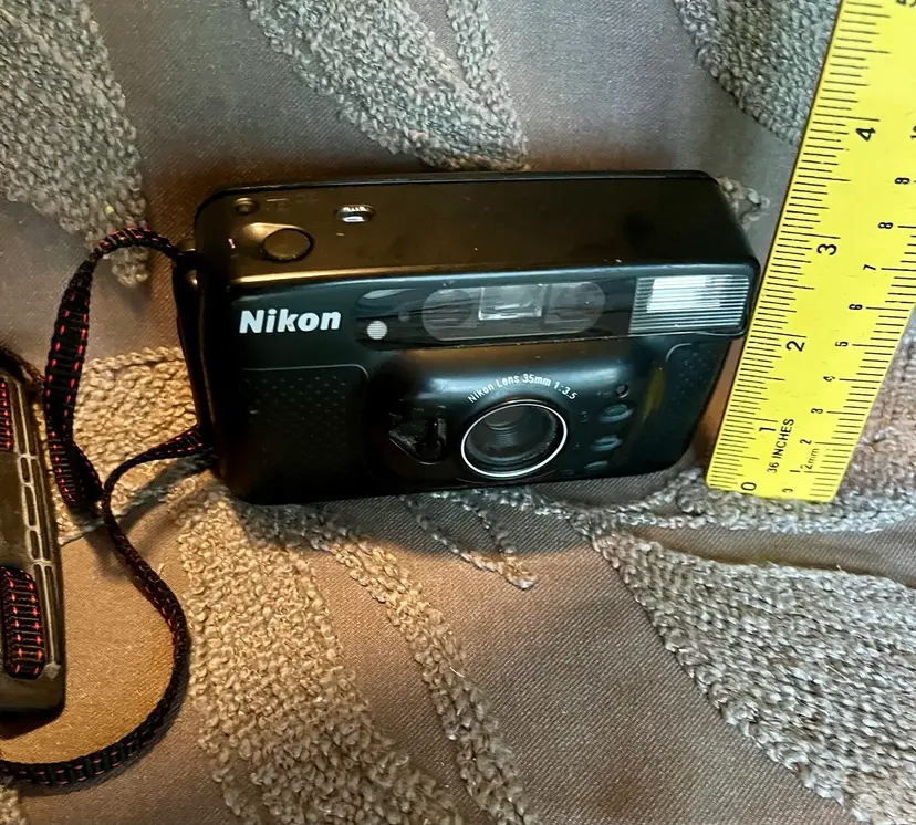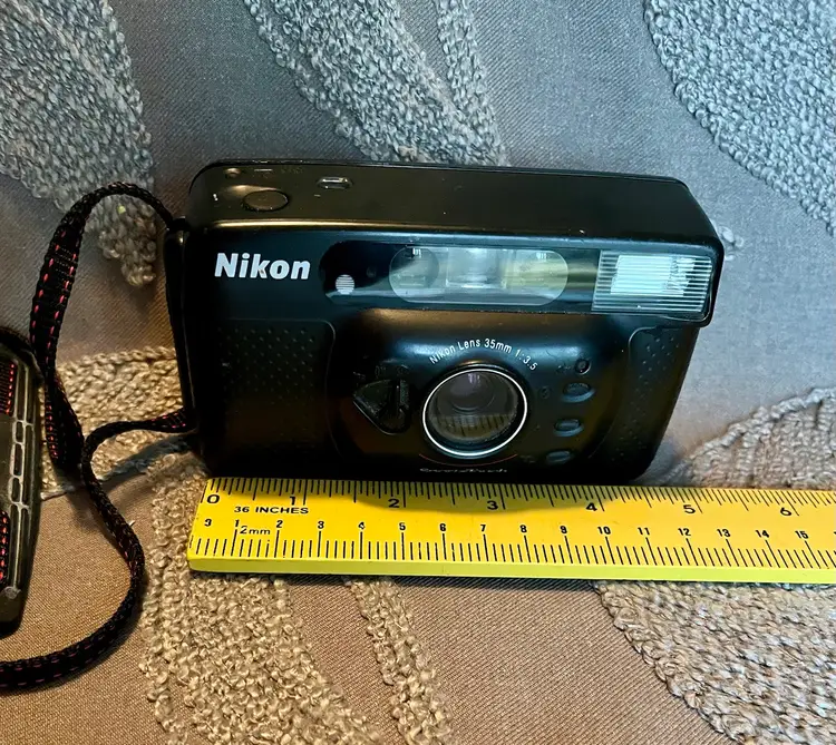 Nikon Lens 35mm 1:3.5 Black Sport Touch Camera Advances Flashes Takes Photos.