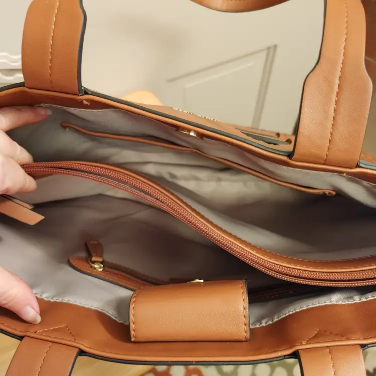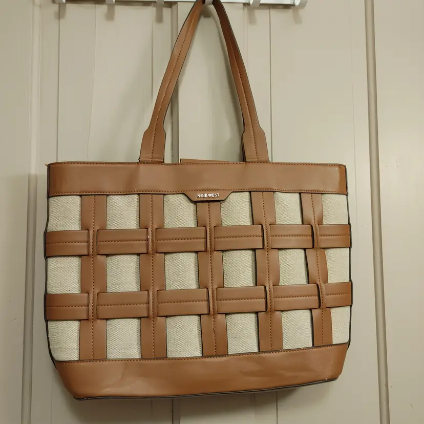 Nine West tote bag/purse. Wear on 1 handle. As shown.