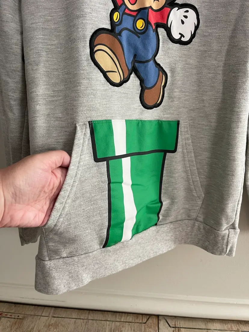 Nintendo Super Mario Bros Super Mario Hoodie Youth XL Pullover Green Pipe Kangaroo Pocket 60 Cotton/40 Polyester Officially Licensed 2020