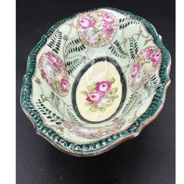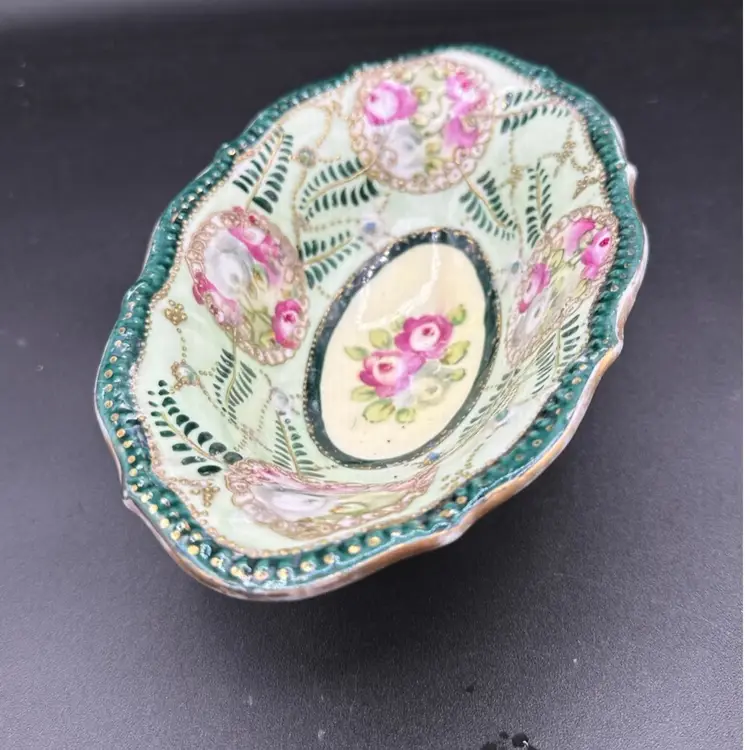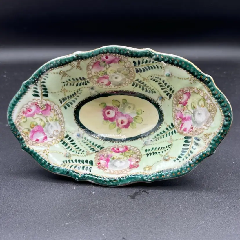 Nippon Antique Moriage Hand Painted Floral Porcelain Vanity Dish. Condition is "Used". Shipped with USPS Priority Mail.