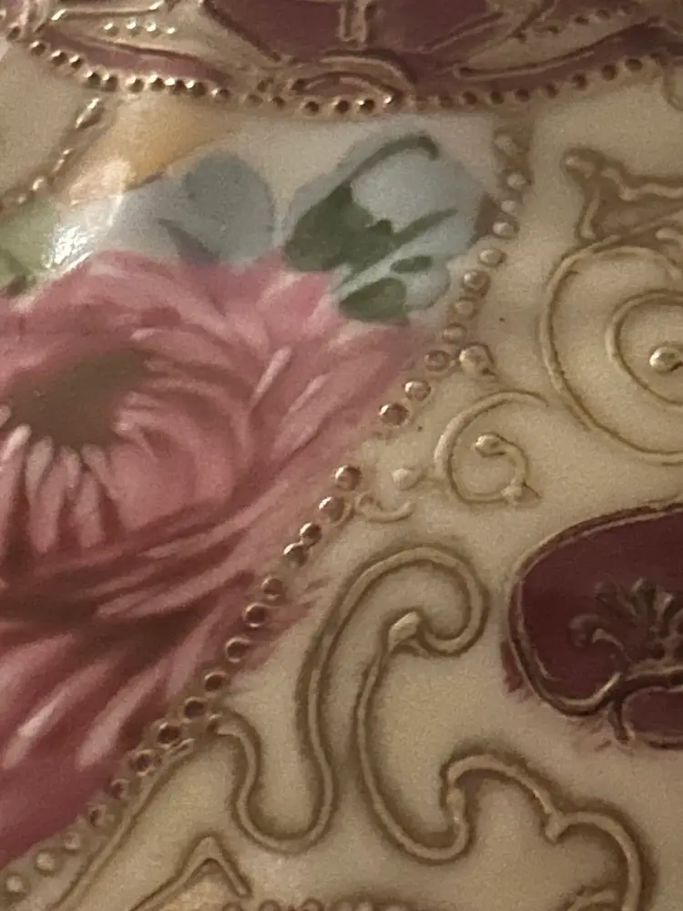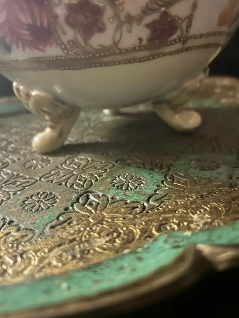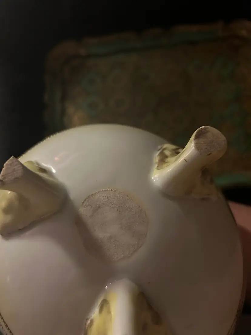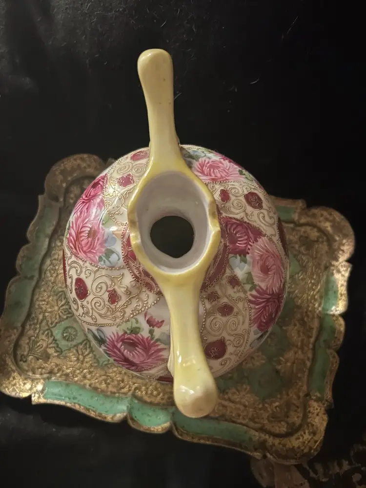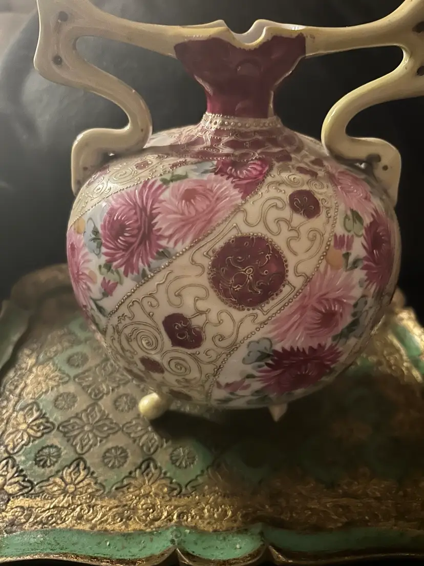 This is a wonderful Japanese Mariage Ewer made in Japan. It has no label or makers mark and one leg is chipped. Please examine pictures as it is sold as is. Chip doesn’t hinder it standing.