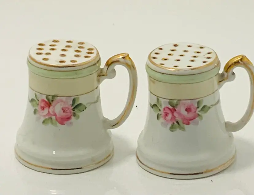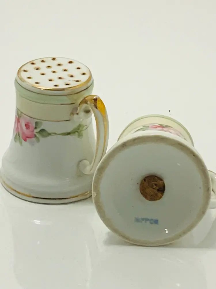 Shows some paint loss but still look gorgeous. The stoppers are dry and will need to be replaced if planning to use as a salt and pepper shaker. Approximately 1.75” tall by 1.5” wide. Made in Japan.