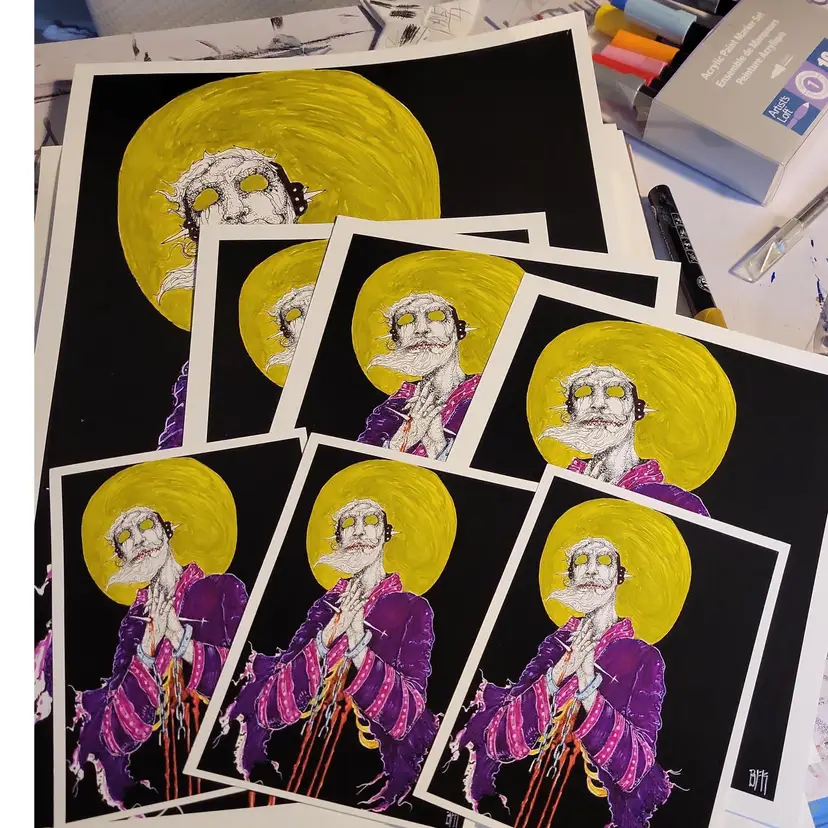 Bfkworks is Brad Kopman, a dark surrealist based in the Philadelphia,PA. area USA. Brad studied art at Hussain School of Art in Philadelphia from 1992-1996. He works in pen & ink on paper as well as Acrylic on Canvas. The works are inspired by a wide range of influences. Music, movies, pop culture, art , religions, nightmares, day dreams, mythologies , legends, authors , emotions , life and death. Often Brad combines beauty and horrors, attraction and disgust. His work has been called paradigm shifting, mind altering views into a parallel universe. Showing the viewer something familiar from a new view point.