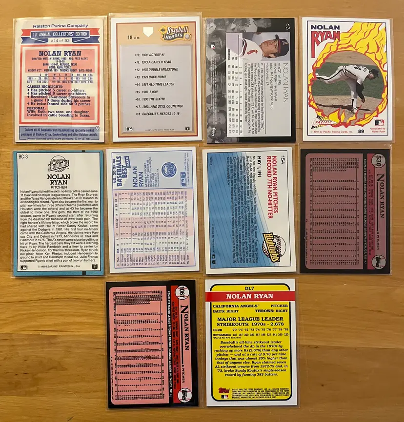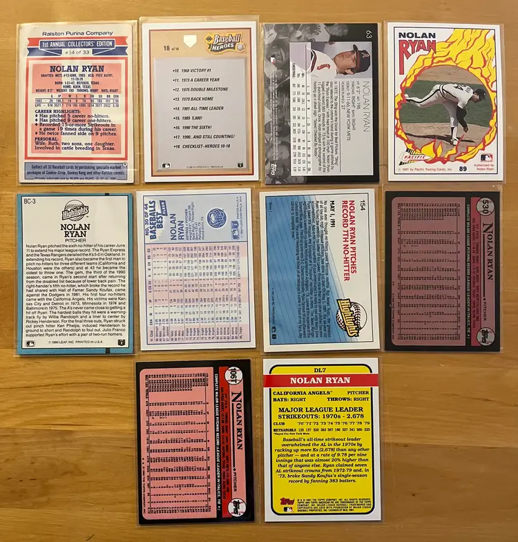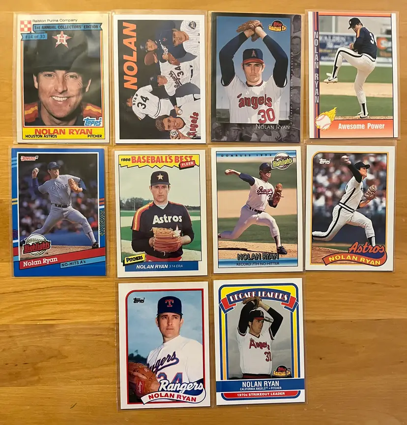 You are bidding on a lot of 10 Nolan Ryan baseball cards.