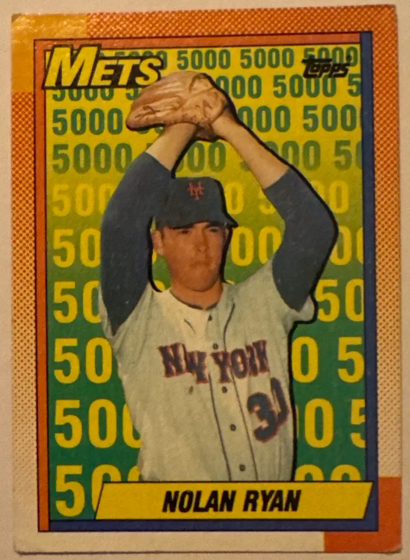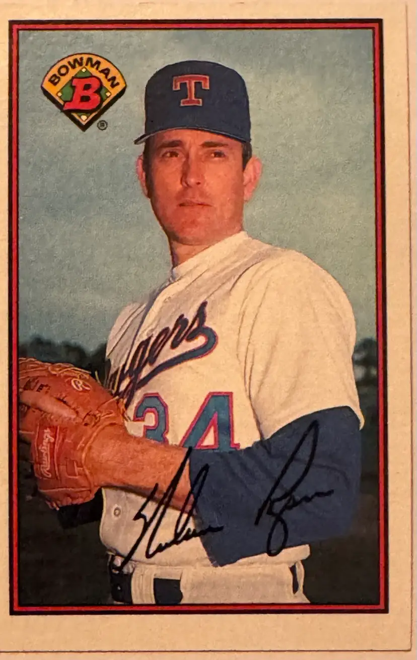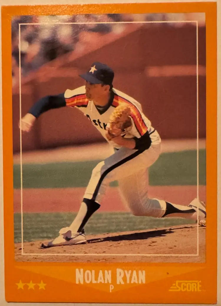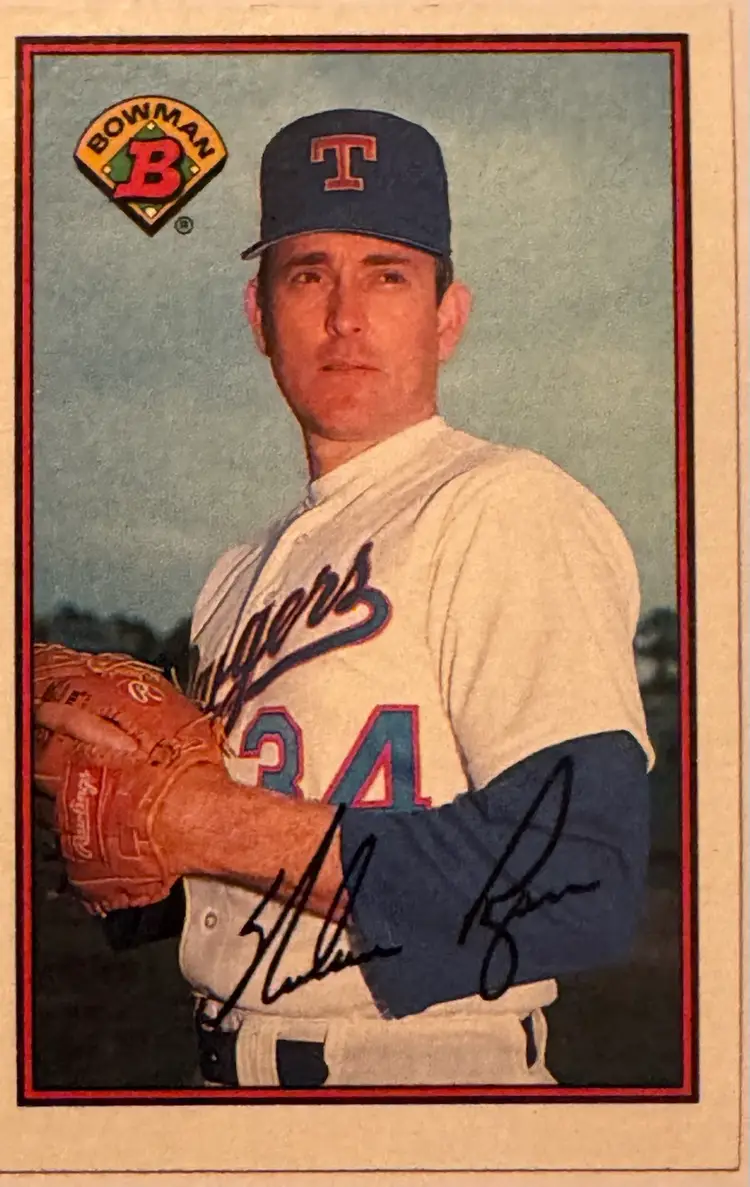 Six different Nolan Ryan cards from Bowman, Topps, Score, Donruss and Upper Deck. Some of the corners are a little rough