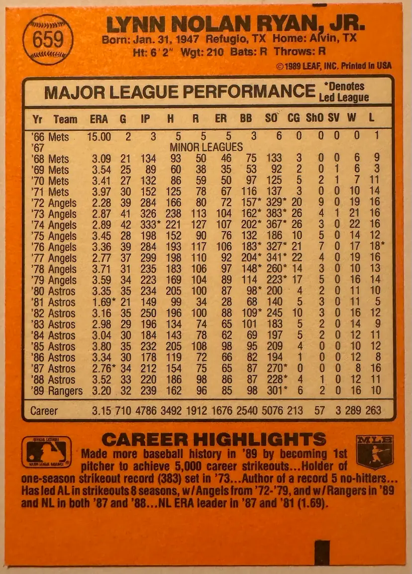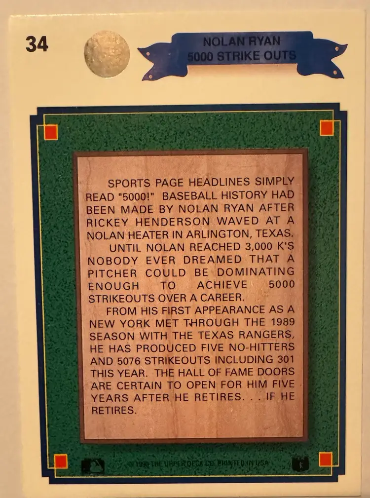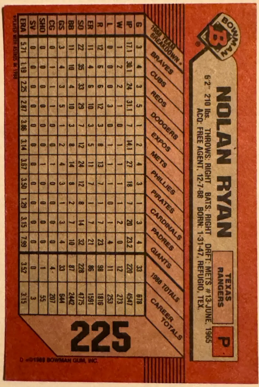 Six different Nolan Ryan cards from Bowman, Topps, Score, Donruss and Upper Deck. Some of the corners are a little rough