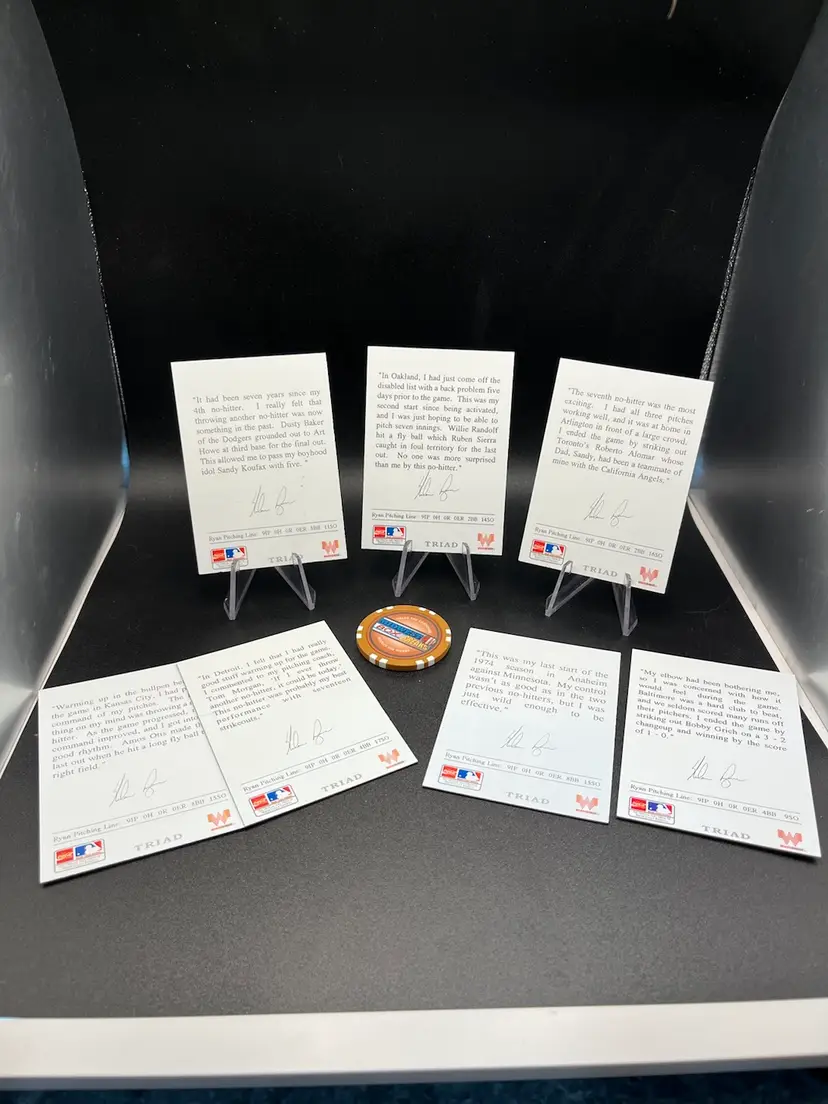 1993 Triad Nolan Ryan cards. This 7-card lot features his 7 no-hitters.