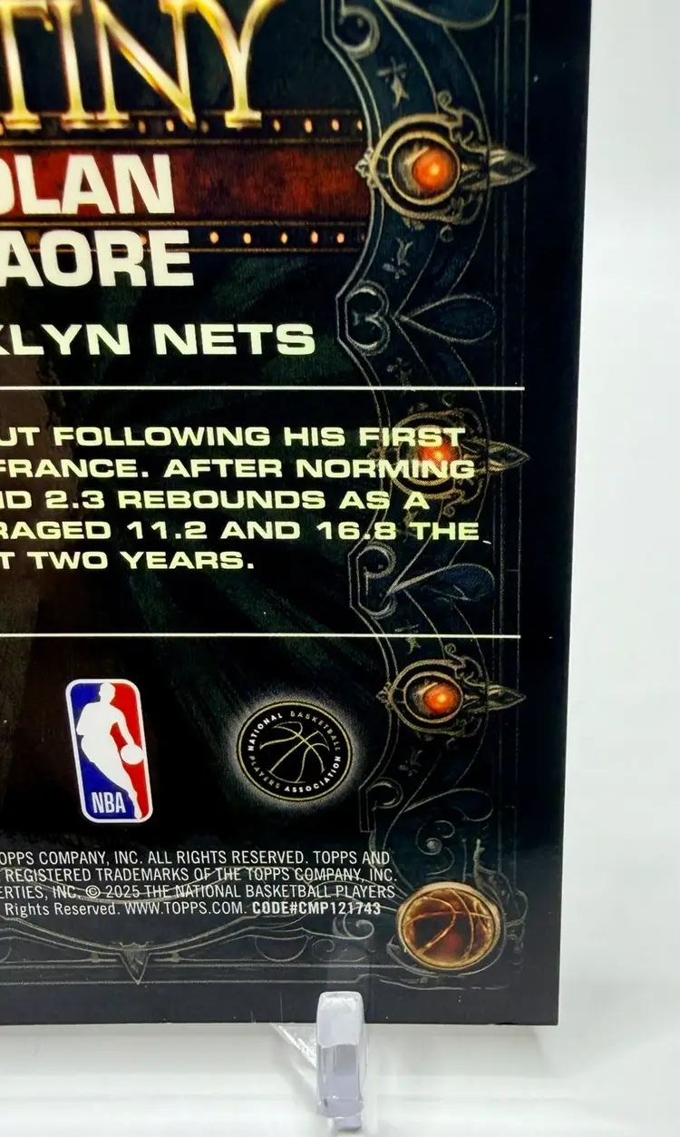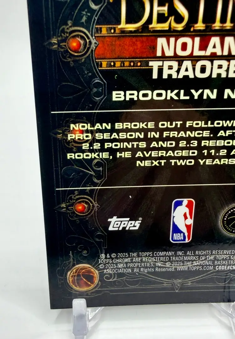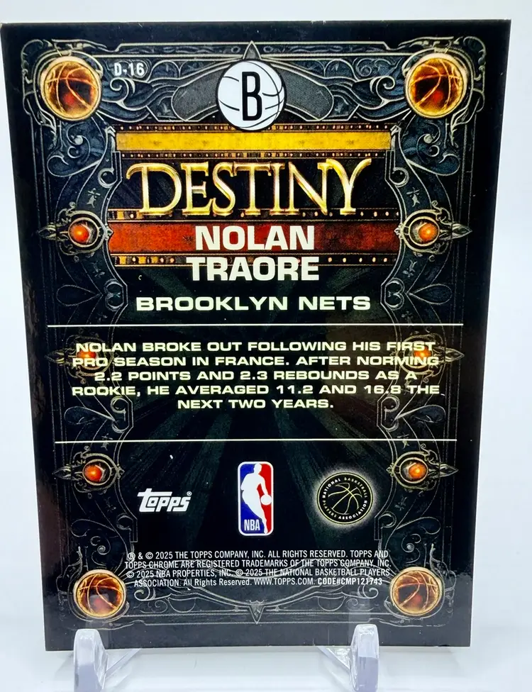 Nolan Traore 2025-26 Topps Chrome Destiny RC Gold Refractor Rookie /50 Nets RC. Condition is Ungraded.