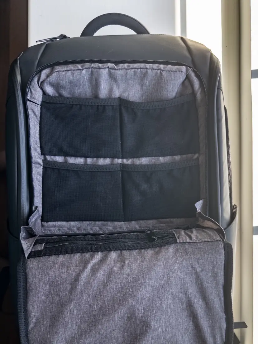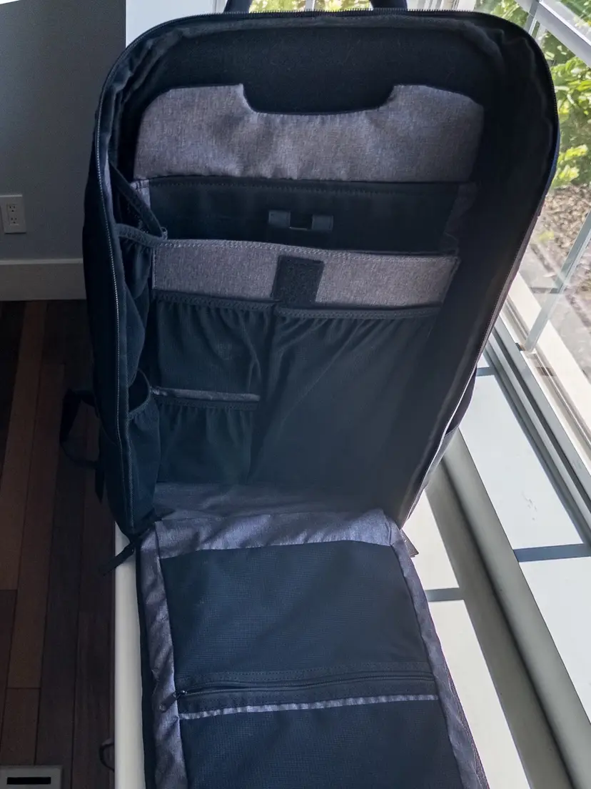 This was my travel bag for two years. Probably 20 trips total. There are light scuffs on the exterior and some stretch marks on a few internal elastic mesh pockets from velcro straps. I tried to capture picks. Includes original sternum strap, key leash, and sunglasses case. Retailed at $269.