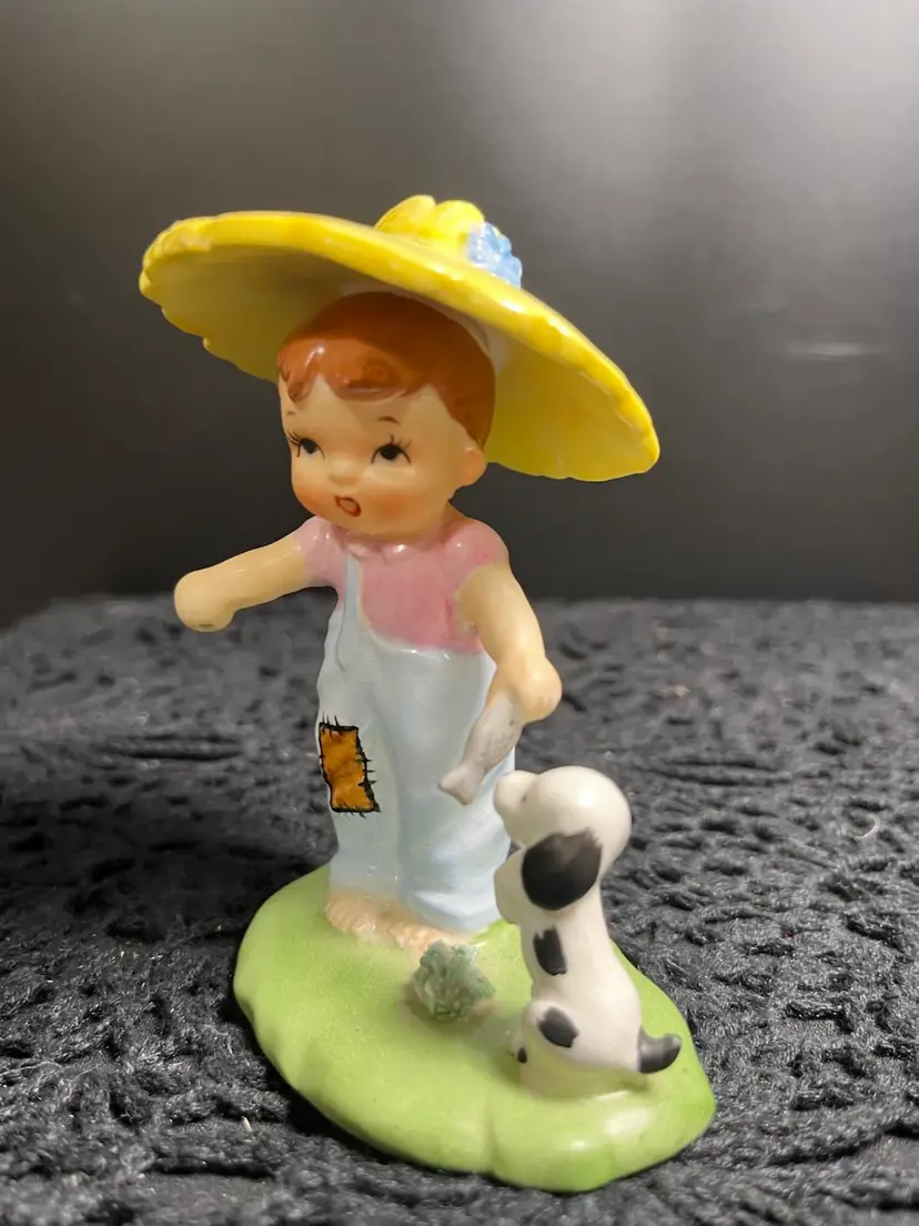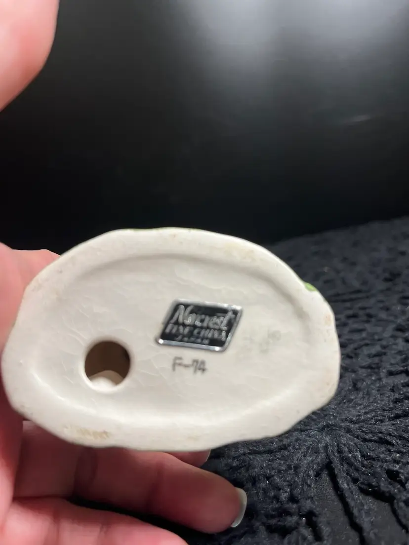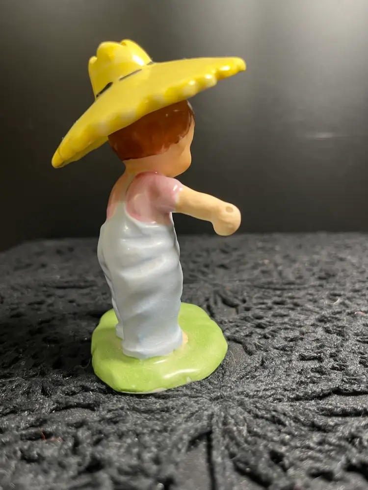 Crazing on bottom. Has a Norcrest sticker. Is missing his fishing pole. Approx 4" H, 2.75" W. Approx 3.5 Oz. Lot 24