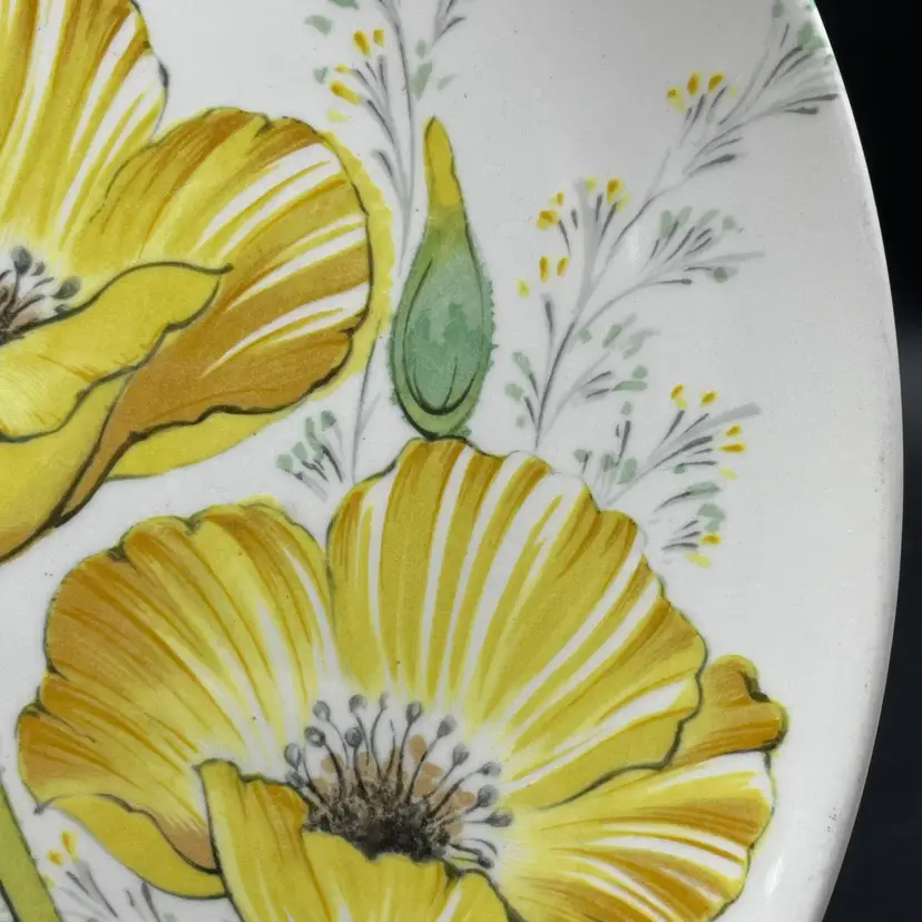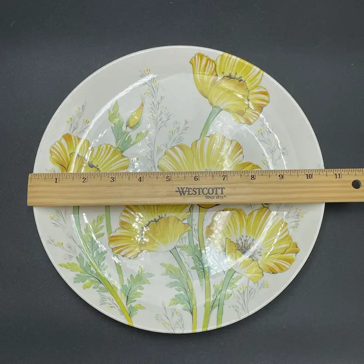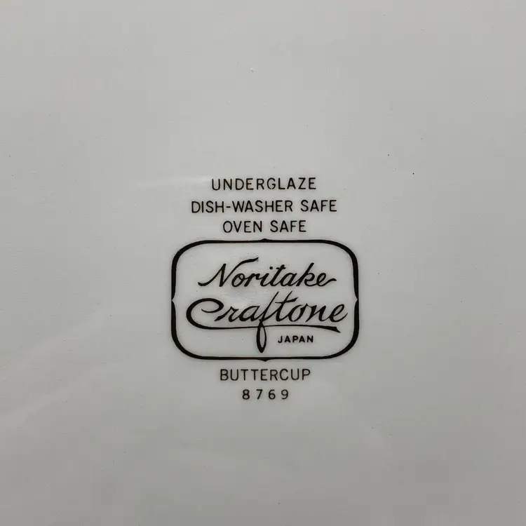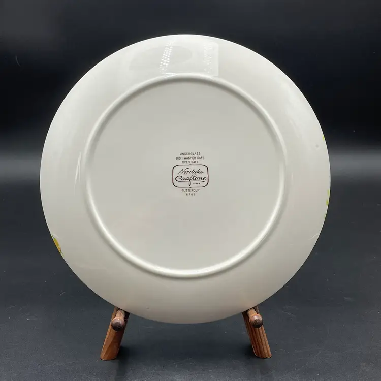 This is a vintage single Noritake Craftone #8769 Buttercup dinner plate. Made in Japan. Measures approximately 10.5" in diameter. There are two makers flaws on the back as shown in pictures. No chips or cracks. Stand not included.