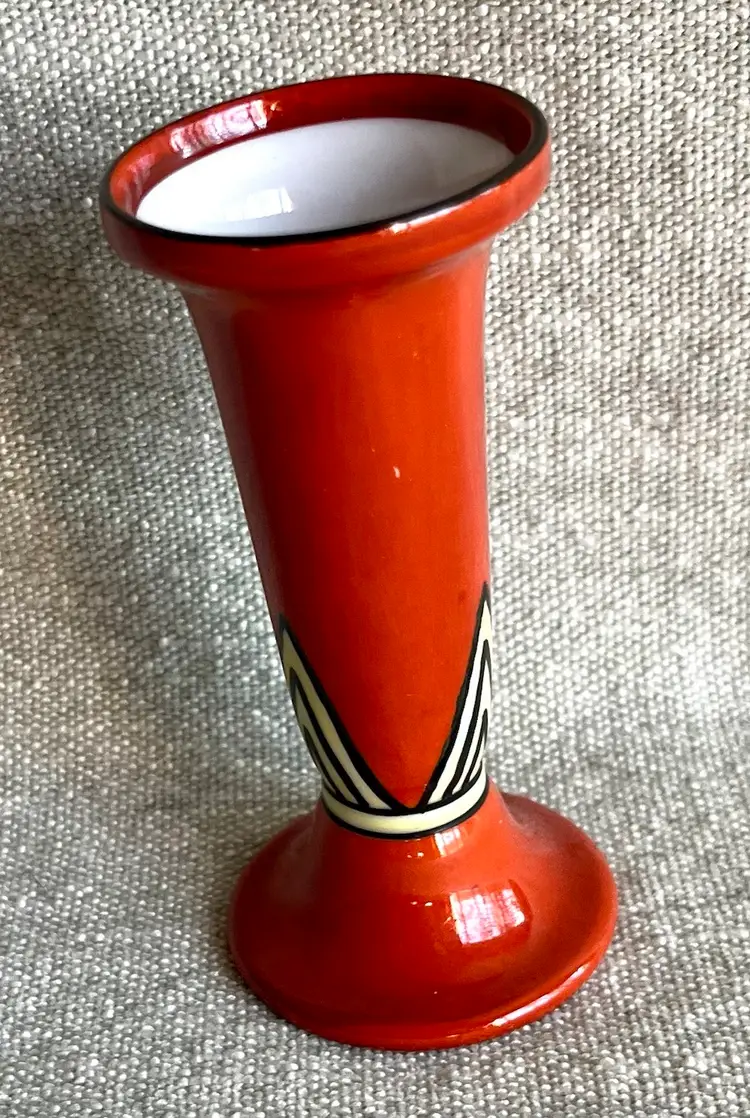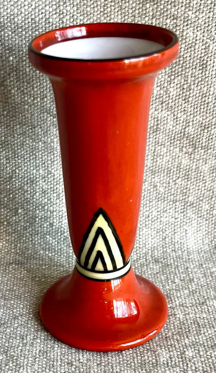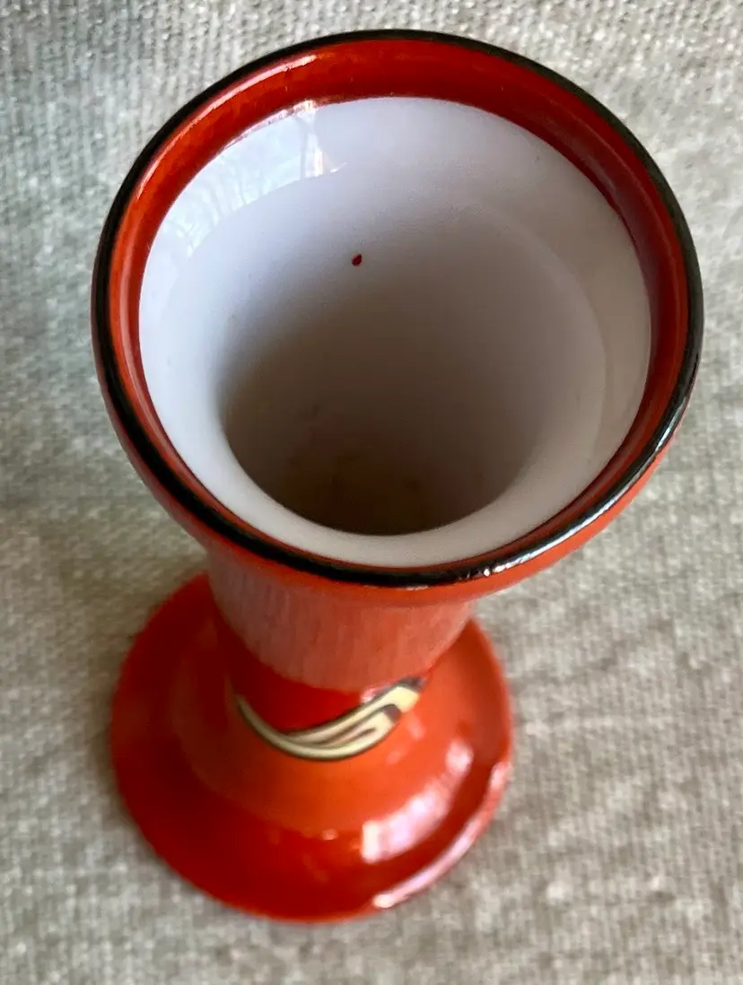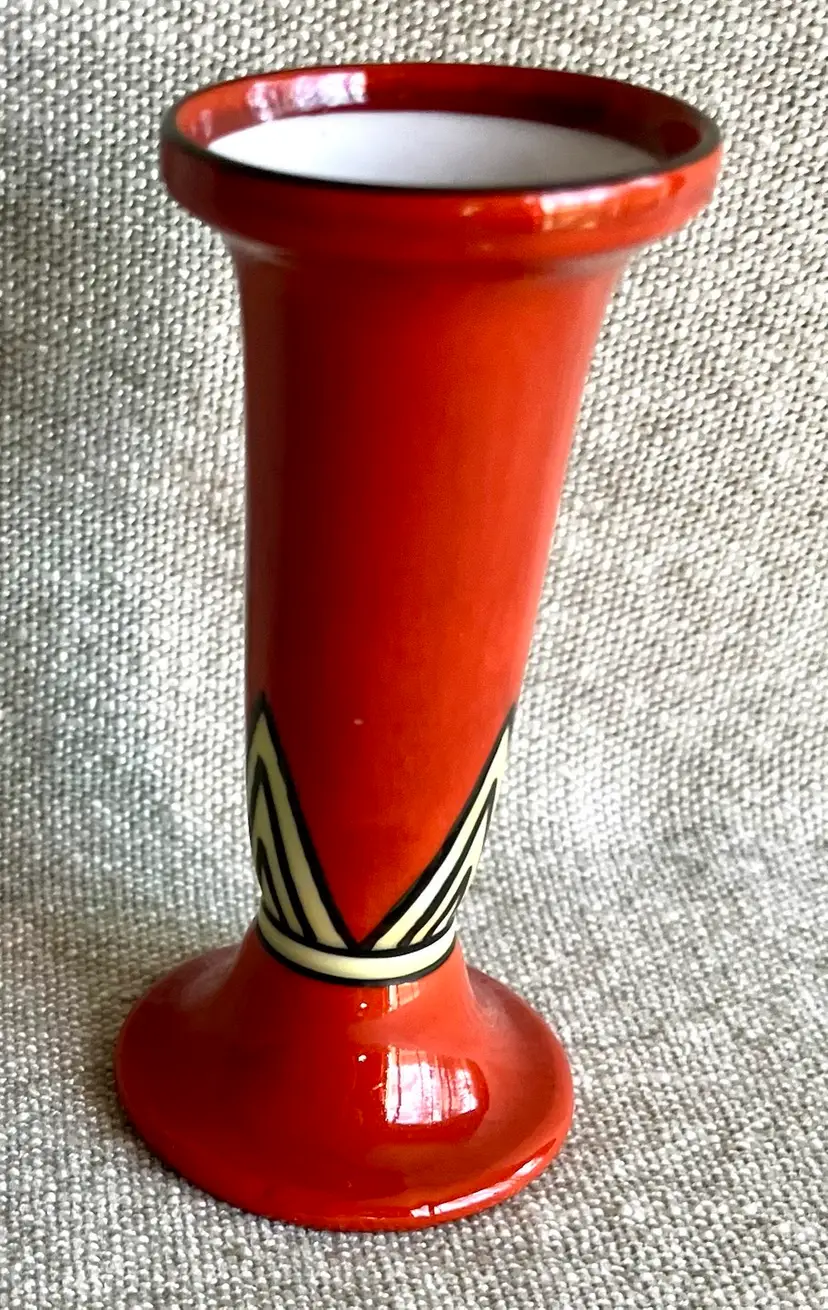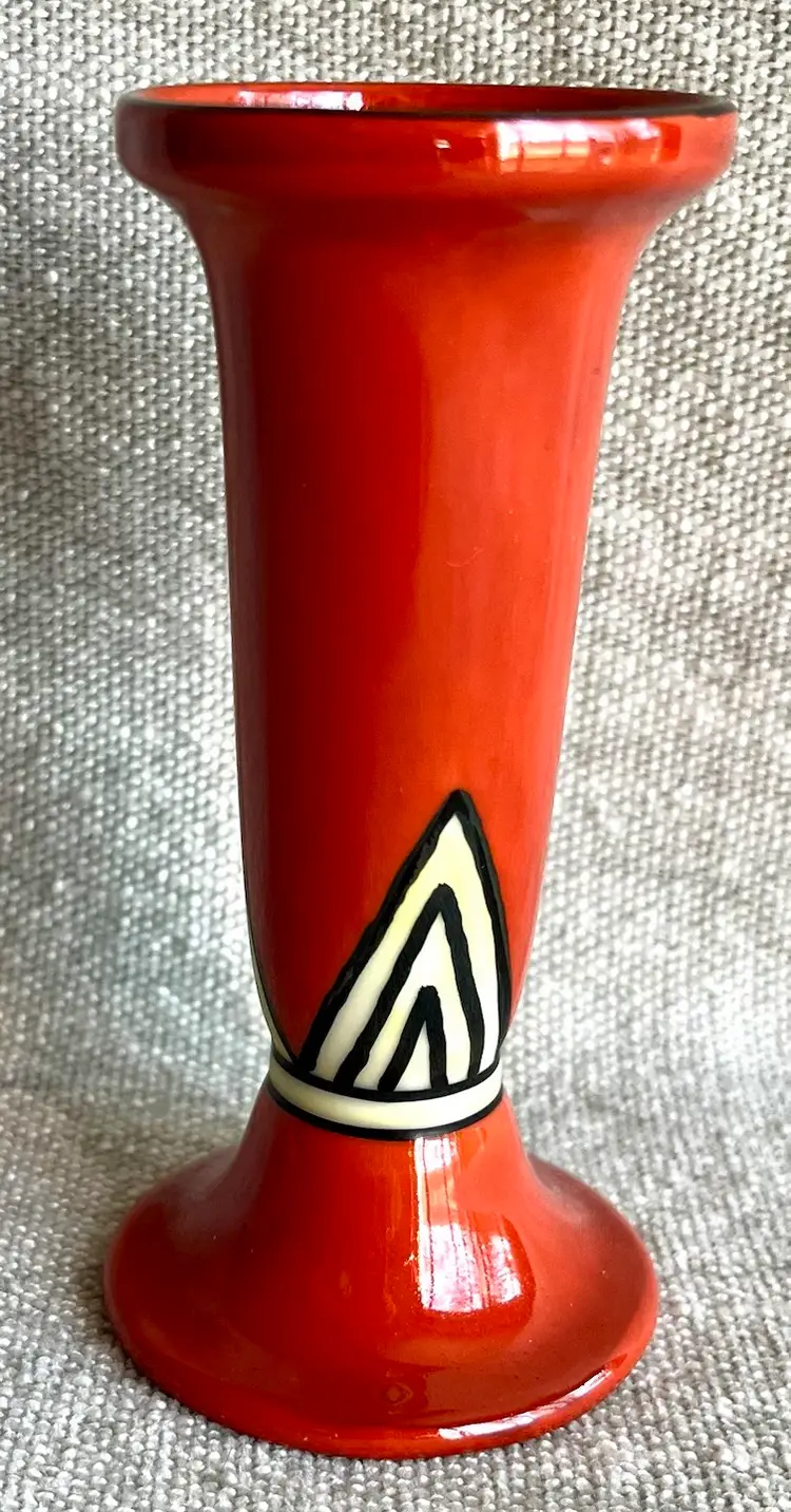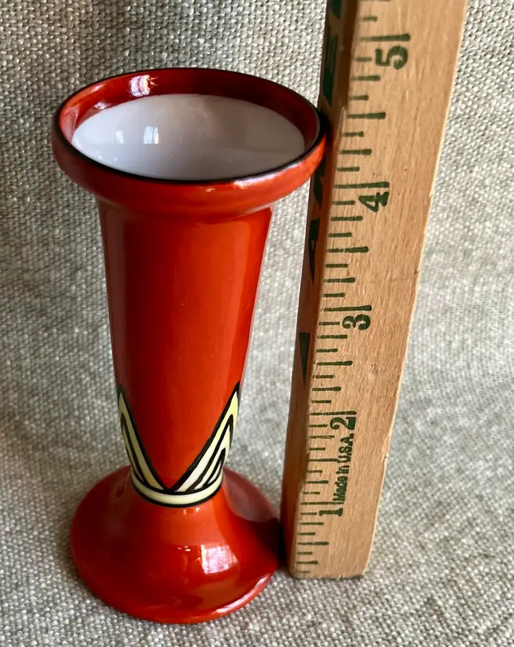 Noritake Handpainted Orange Yellow Black Art Deco Style Fluted 4.5” T Bud Vase Japan
