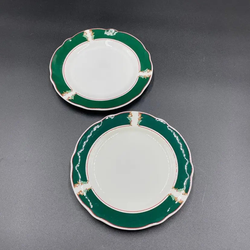 This is a vintage set of 2 Noritake Primachina retired pattern 9425 Home for Christmas bread plates. Each measure approximately 6.5" in diameter. No chips or cracks.