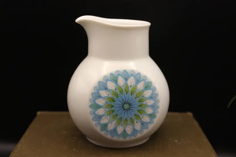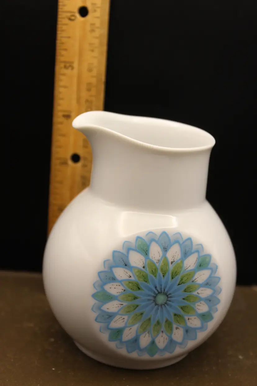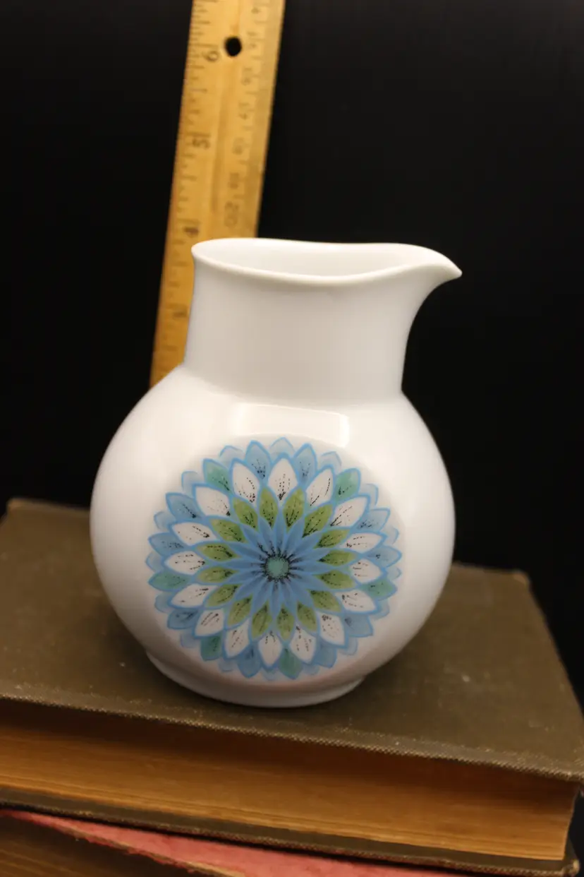 Noritake Bahama pattern #6922 was produced between 1969 and 1977. It was part of the "Younger Image" line and featured a blue floral design on a white background. (Porcelain) Just adorable. in perfect condition. Very Mid Century. Add to your collection or just enjoy a bit of cream with your coffee or tea in style! Stands approximately 4 inches in height. Round base and spout to pour! Made in Japan