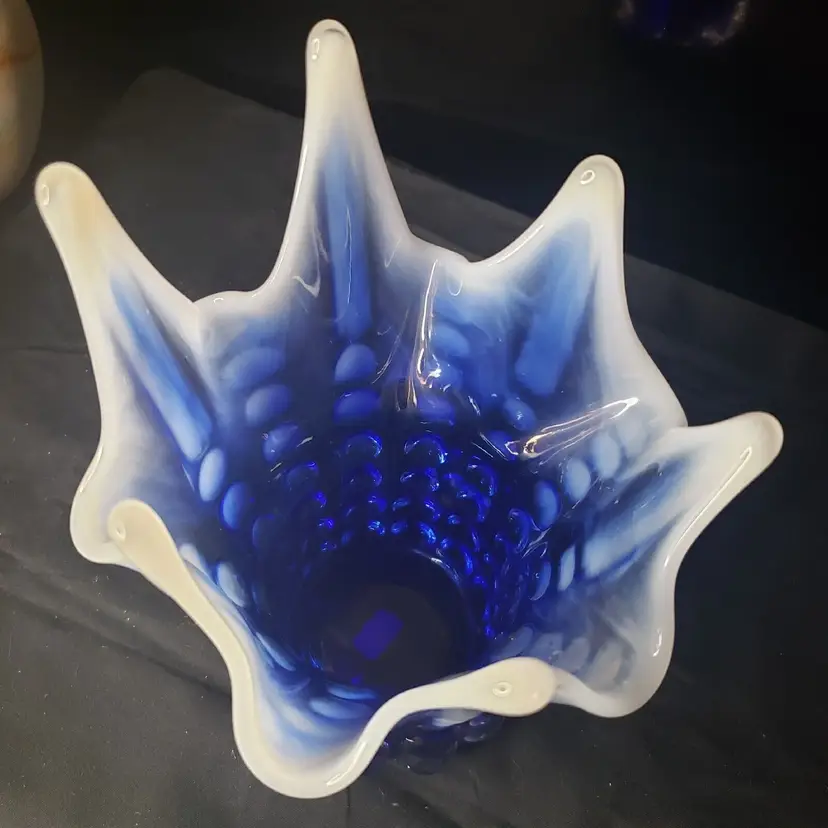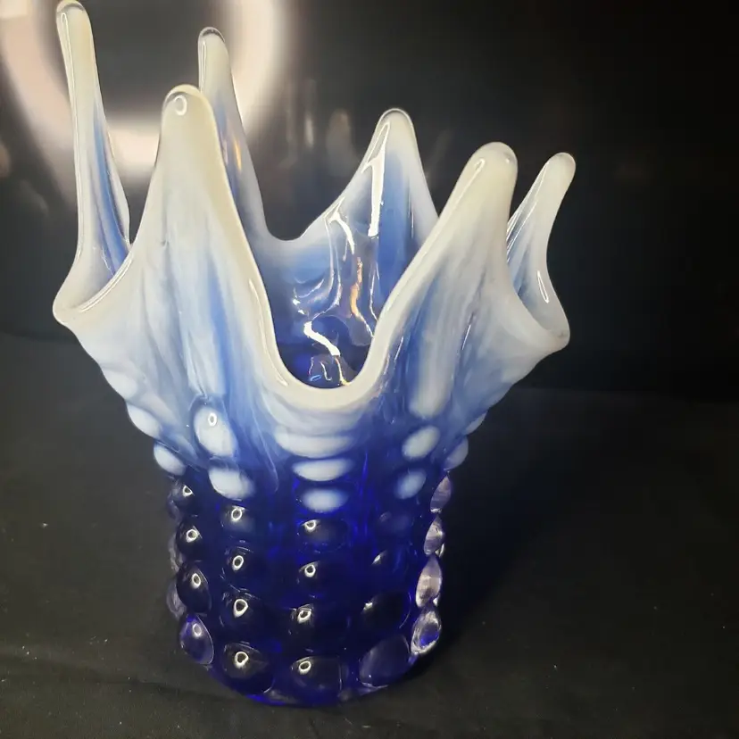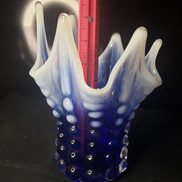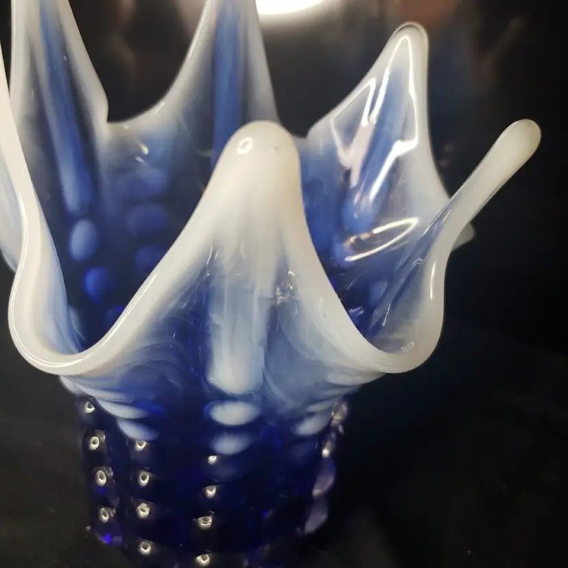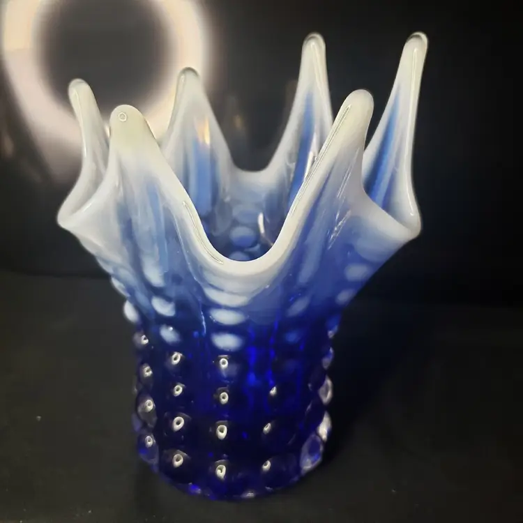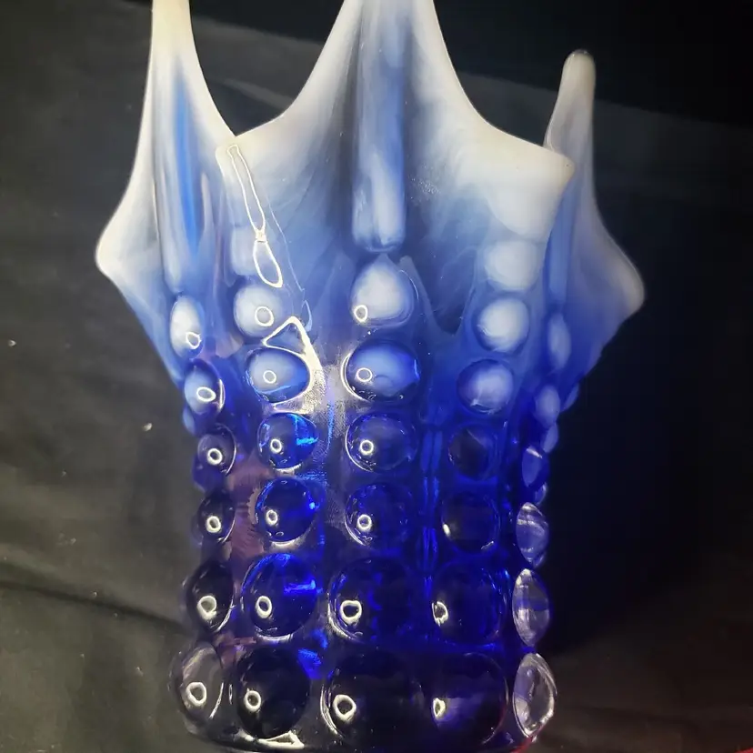 Pattern: Hobnail, Bubble Color: Cobalt Blue Opalescent Material: Glass Brand: Norleans Type: Vase Features: Petal - Like Top Production Style: Opalescent Glass Time Period Manufactured: Unknown Country/Region of Manufacture: Japan Production Technique: Unknown Product Line: Bubble