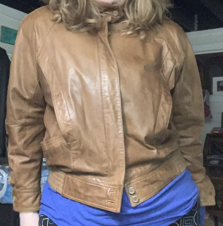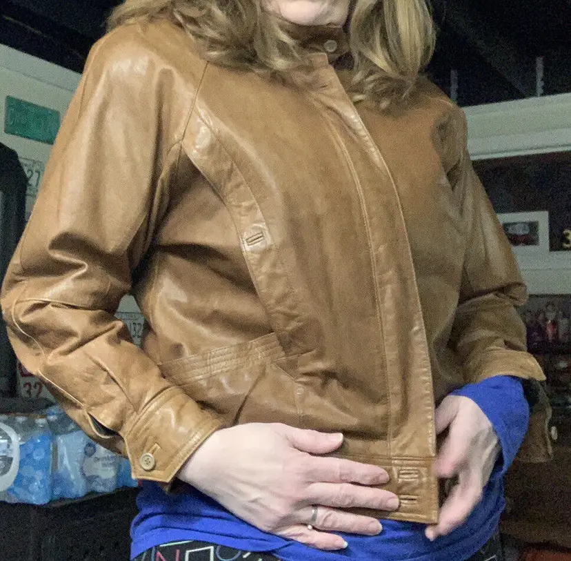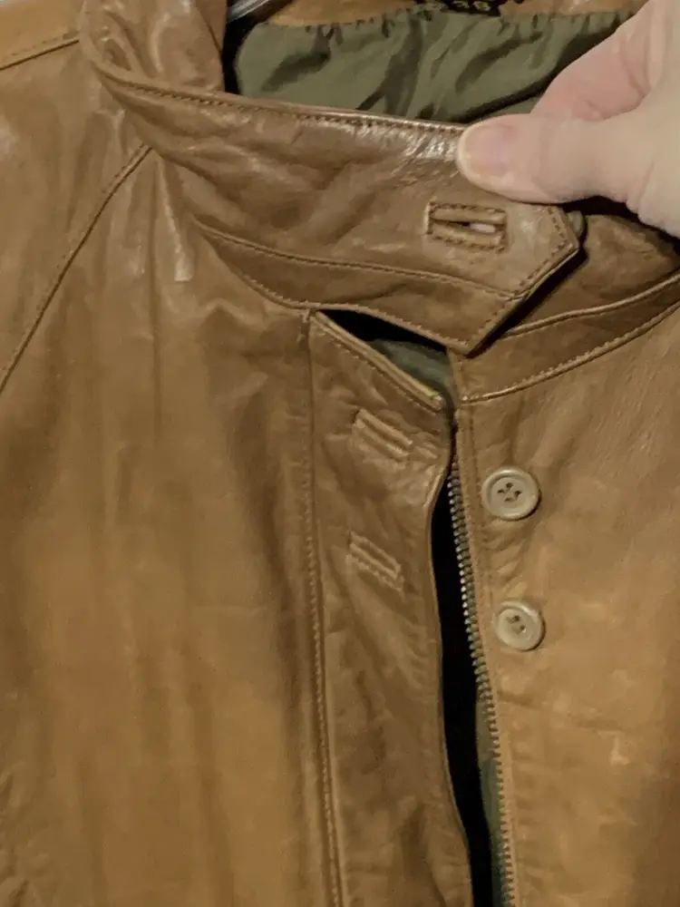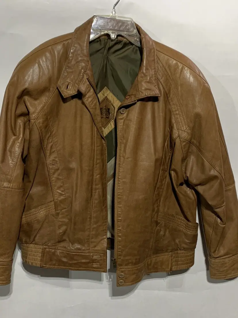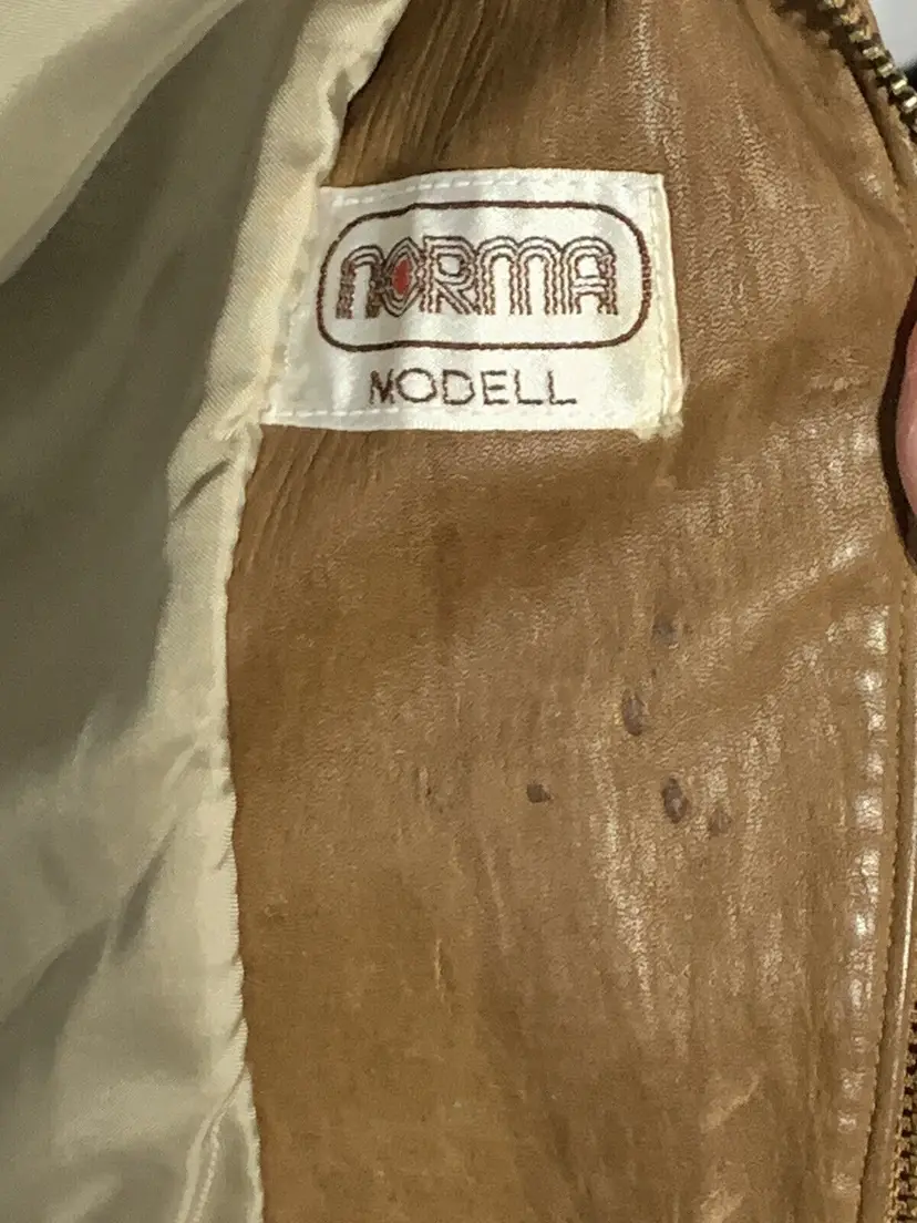 Brand: Norma Size Type: Regular Occasion: Casual Color: Brown Decade: 1980s Style: Jacket Fur Type: None Material: Leather Look: Art Deco Size (Women's): S/M