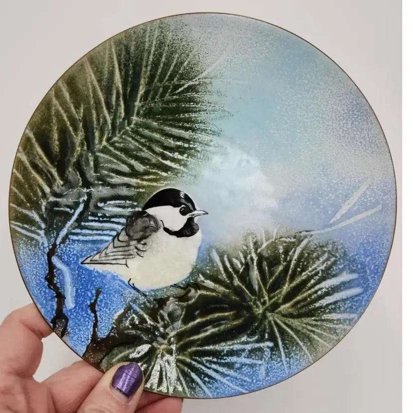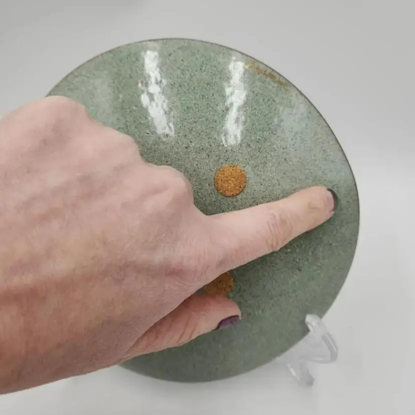 One spot on plate dips down a little bit not making it a perfect circle. 7" round.