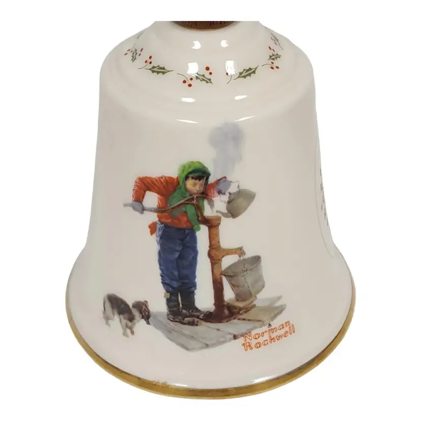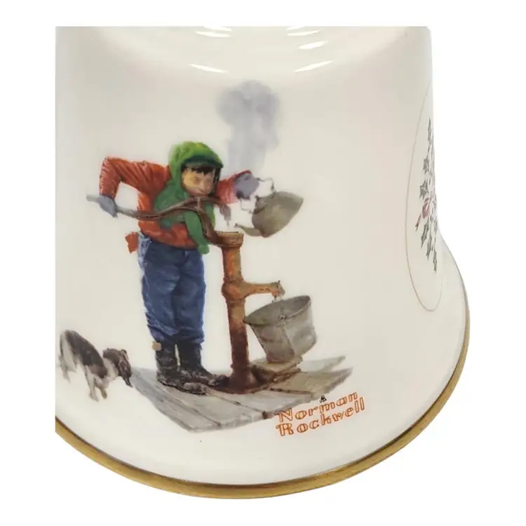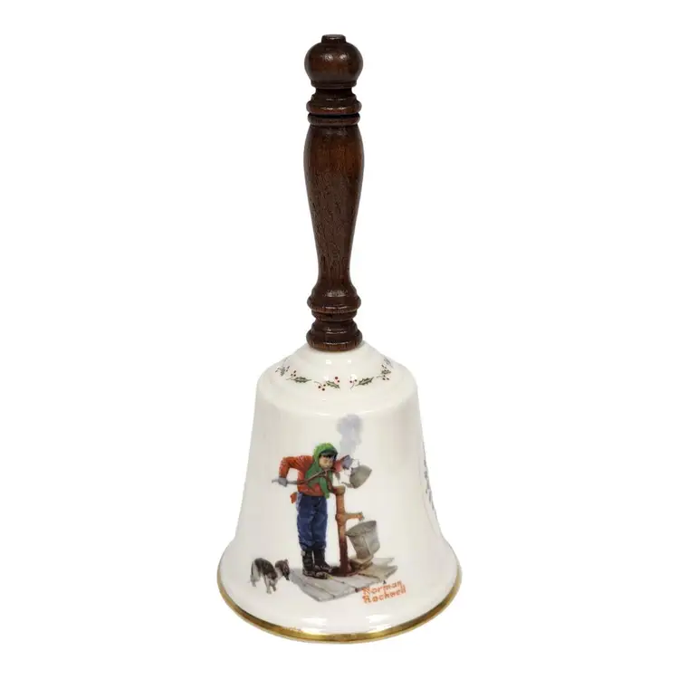 Norman Rockwell 1977 Gorham Fine China Bell "Chilling Chore" - 9" Tall