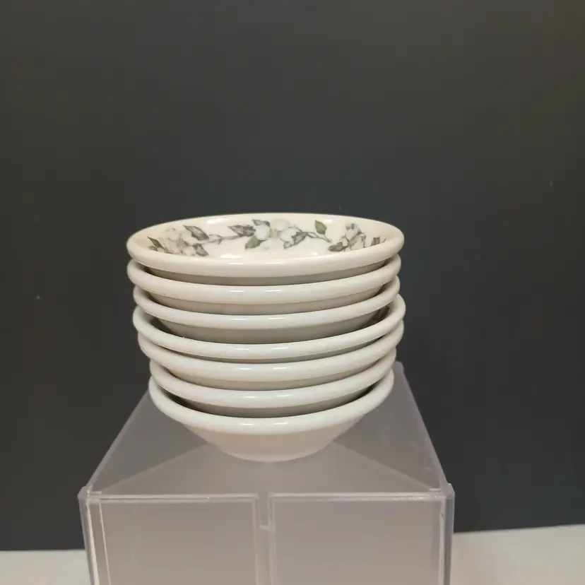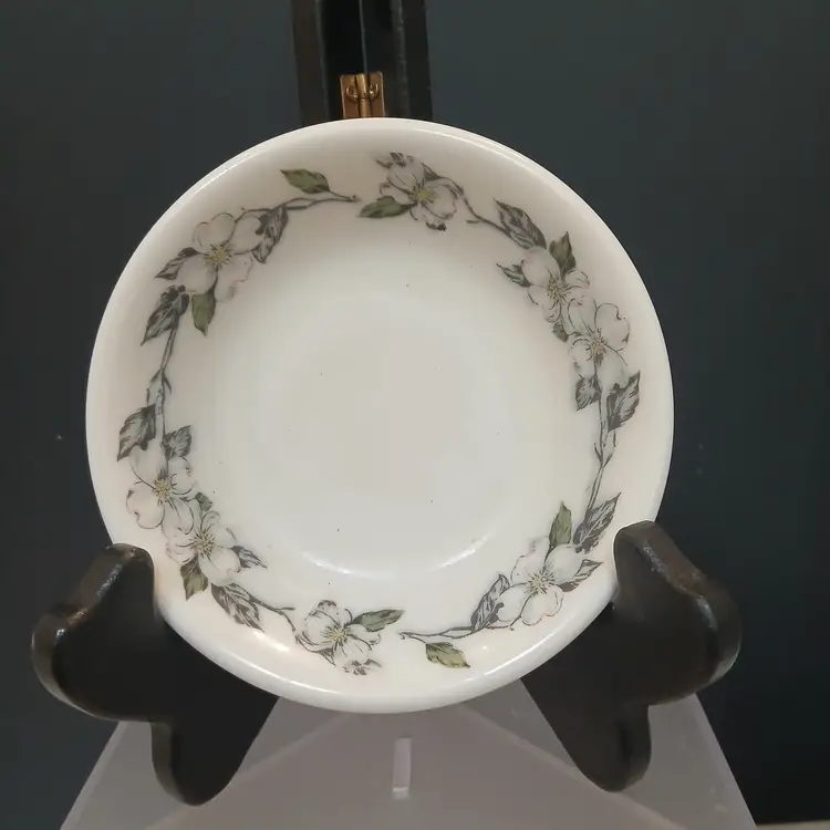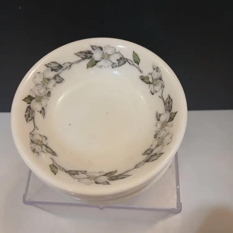 Circa 1920's to 1950's, these small bowls accompanied other dishes in the same line in the dining car on a train. Most likely dessert bowls or individual side dish bowls. The beautiful dogwood pattern is great for any spring, Easter, or summer table.