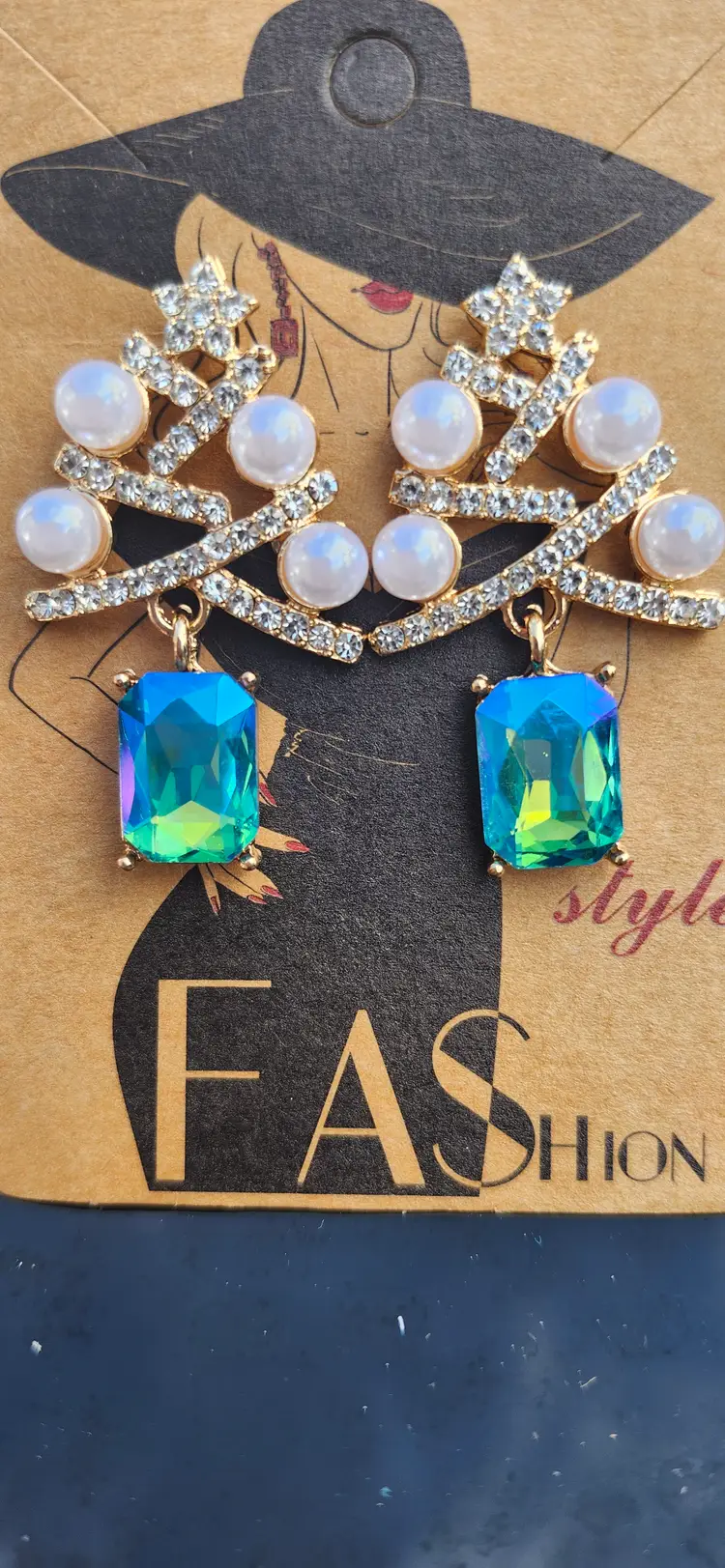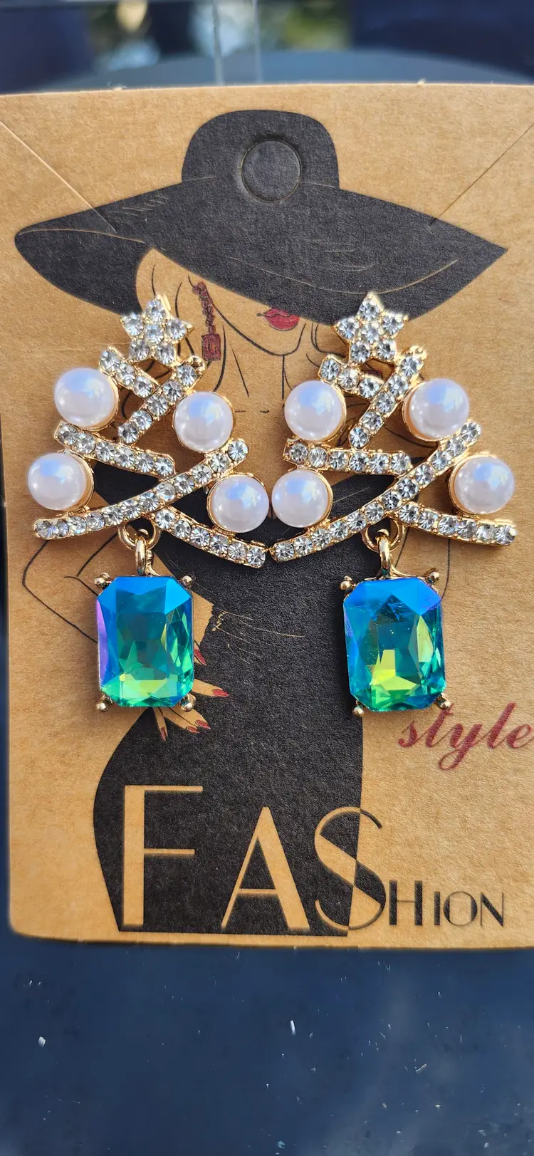 Shine bright this holiday season with these enchanting Christmas tree earrings. The festive evergreen design is adorned with brillant cubic zirconia stones and elegant faux pearls. But the real showstopper is the iridescent, faceted gemstone that dangles below, shimmering with a mesmerizing play of blue, green, and gold colors. These stunning earrings are a unique and eye-catching accessory for any holiday party or special event. They make perfect gift tor someone who loves to stand out with touch of O unique sparkle.
