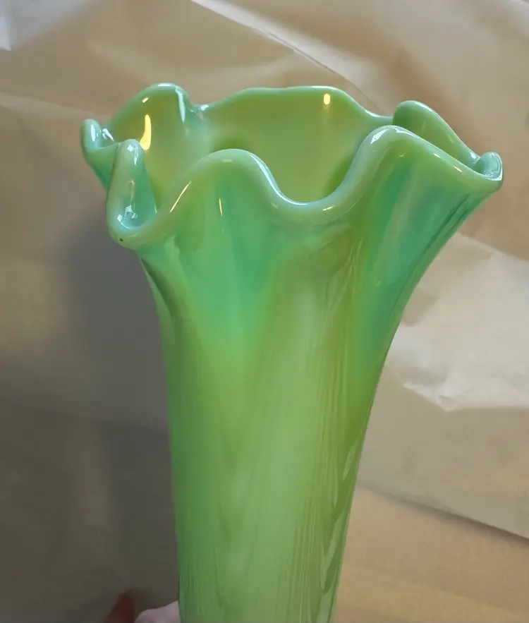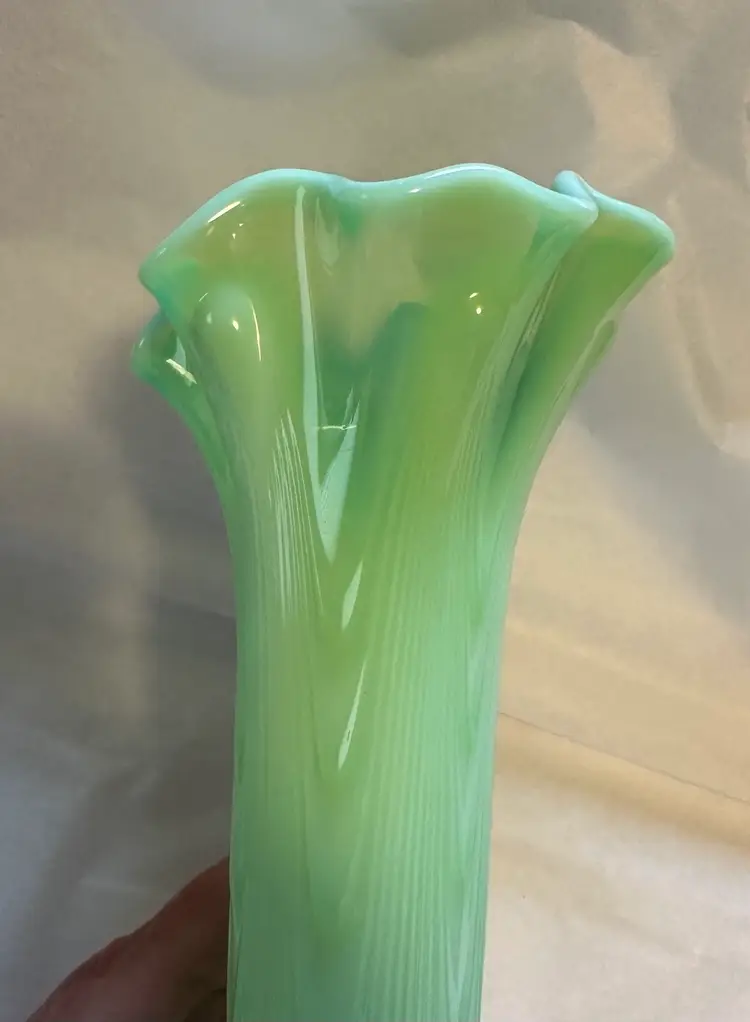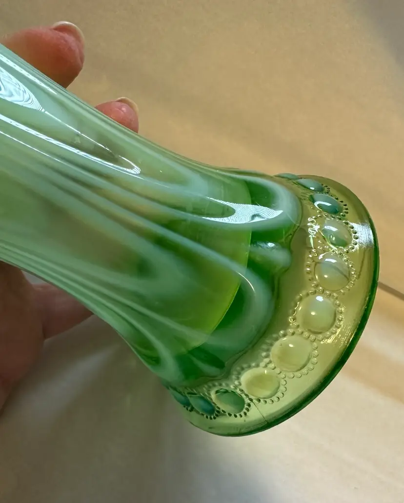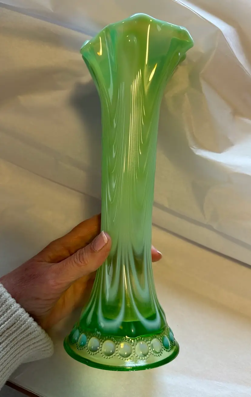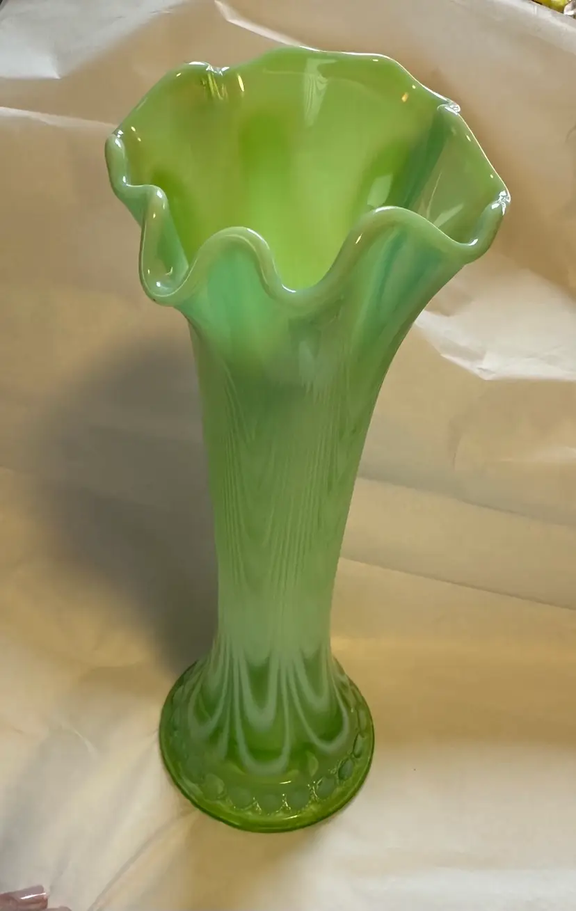 Beautiful Northwood stretch swung vase. The pattern is Jewel & Drapery.