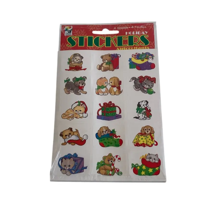 New old stock Color Clings package of holiday stickers with puppies and kittens designs. Each package contains 4 sheets.