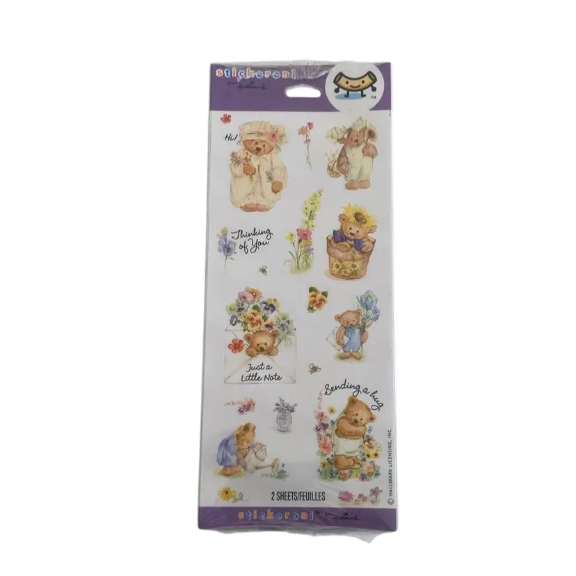 New old stock Hallmark package of stickers with adorable teddy bears. Each package contains 2 sheets. Made in the USA.