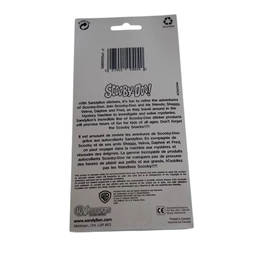 New old stock Sandylion brand, Cartoon Network Scooby-Doo stickers. Each package contains 4 sheets.