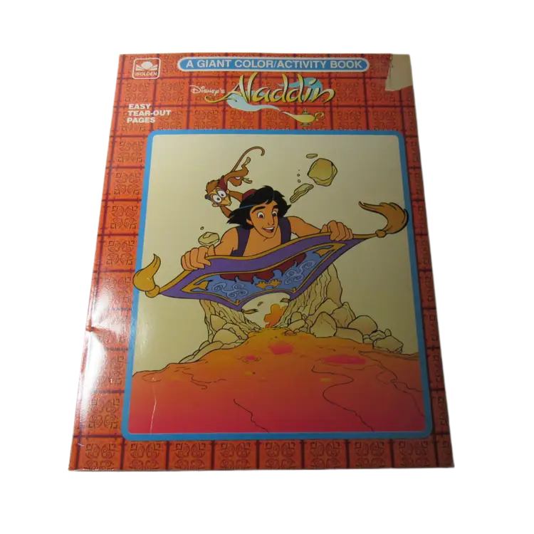 Vintage New 1992 Disney's Aladdin Giant Coloring & Activity Book-Golden Publishing 1992/ ISBN 0-307-03419-4-Easy tear out pages-1 Corner on front has torn off
