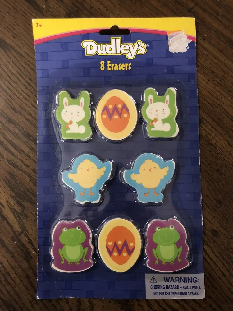 Dudley's Erasers New Old Stock Packages Are Not In Great Shape, But Still Sealed Erasers Are New In Package Easter Or Spring Themed Bunnies, Chicks, Eggs & Frogs Erasers Measure Approx 1 3/4" x 1 1/2" Feel Free To Contact Me With Any Questions I Do Combine Shipping Character: Baby Animals Material: Rubber Theme: Spring Type: Erasers Color: Multicolor MPN: 6041086 Occasion: Easter Brand: Paper Magic Group, Inc