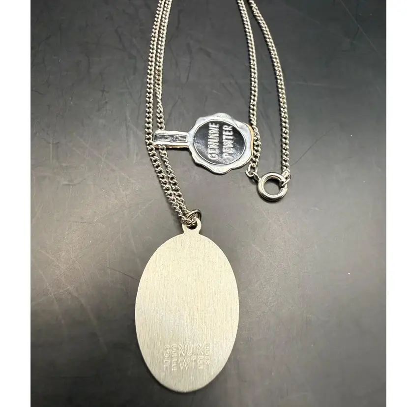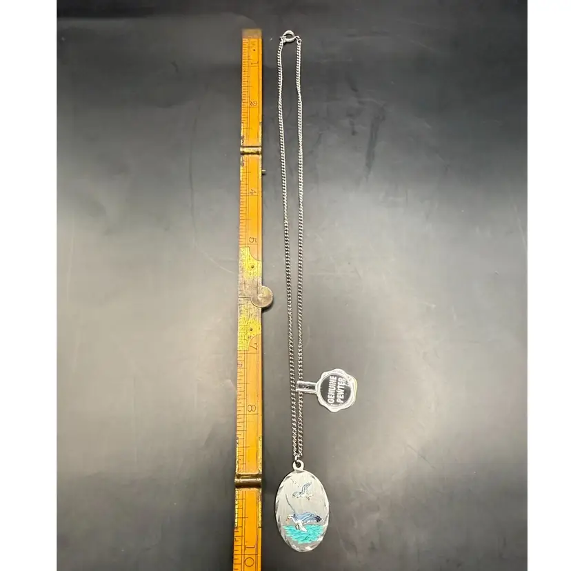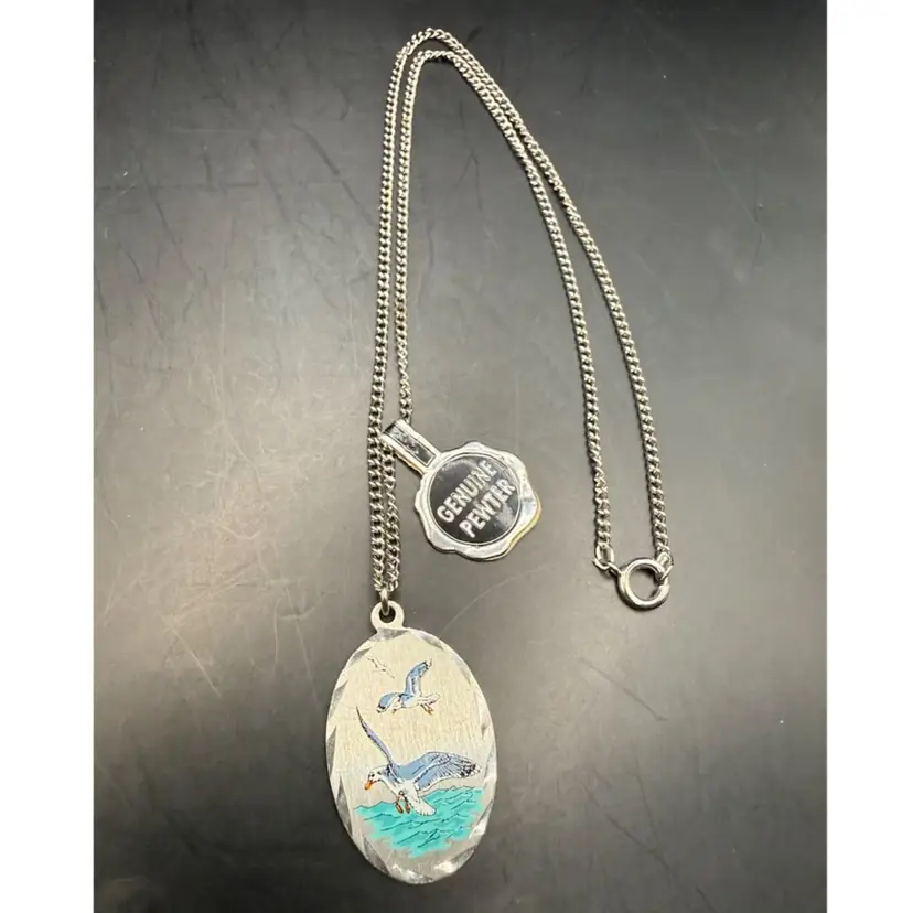 NOS Genuine Pewter Hand Painted Shorebird Pendant 1” Necklace 18”