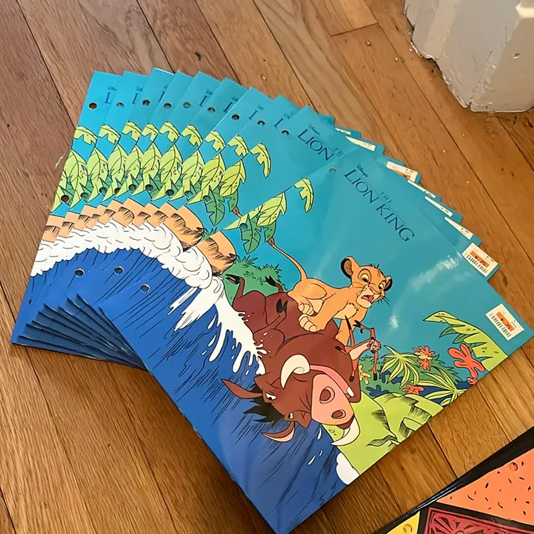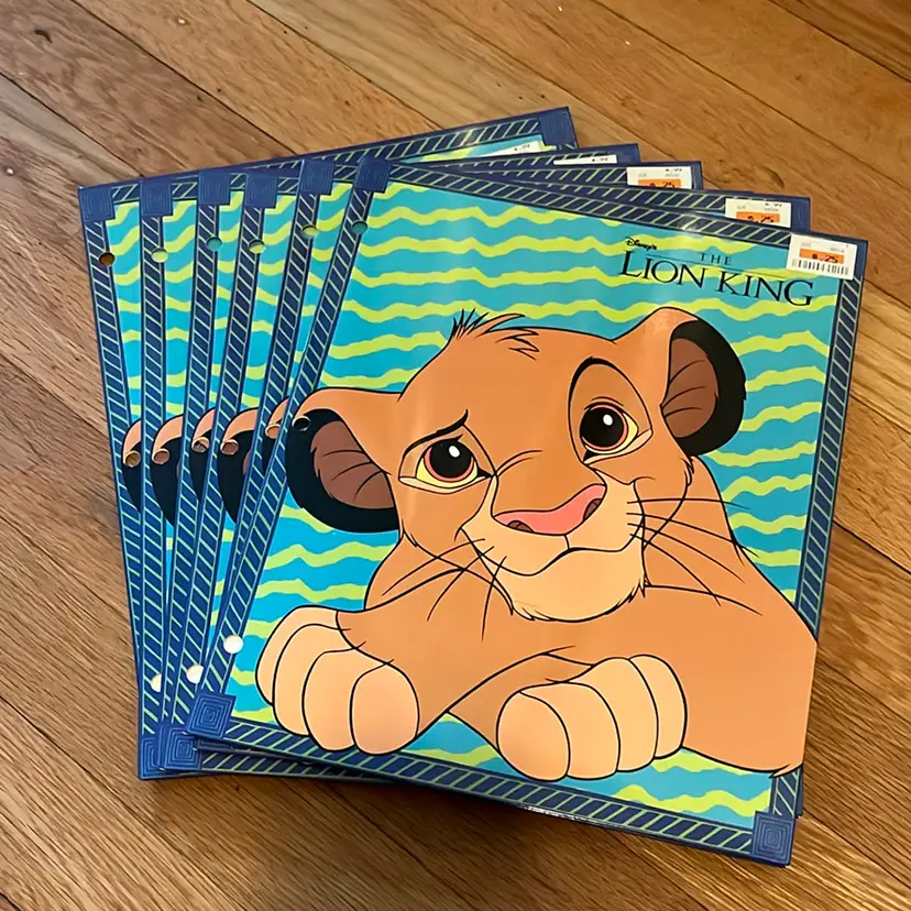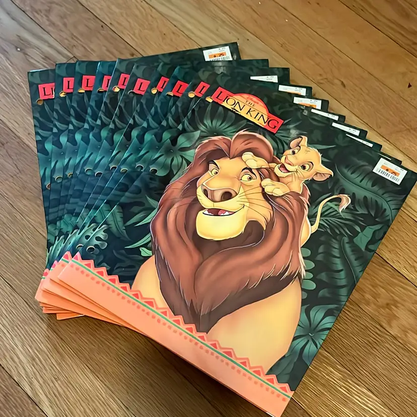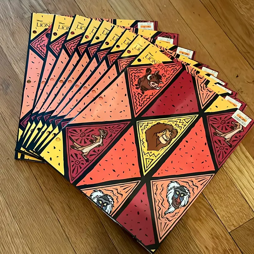 NOS 3 hole punch folders 4 designs 10x Simba with Timon & Pumba 10x Mufasa & Simba 9x Characters on geometric design 6x Simba