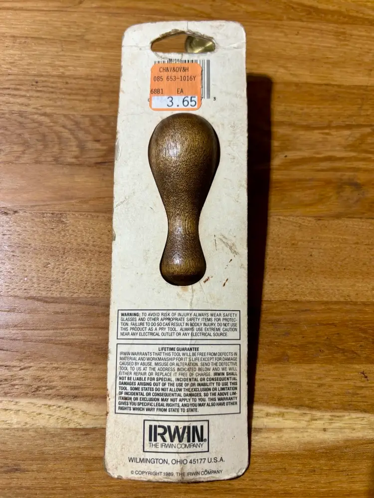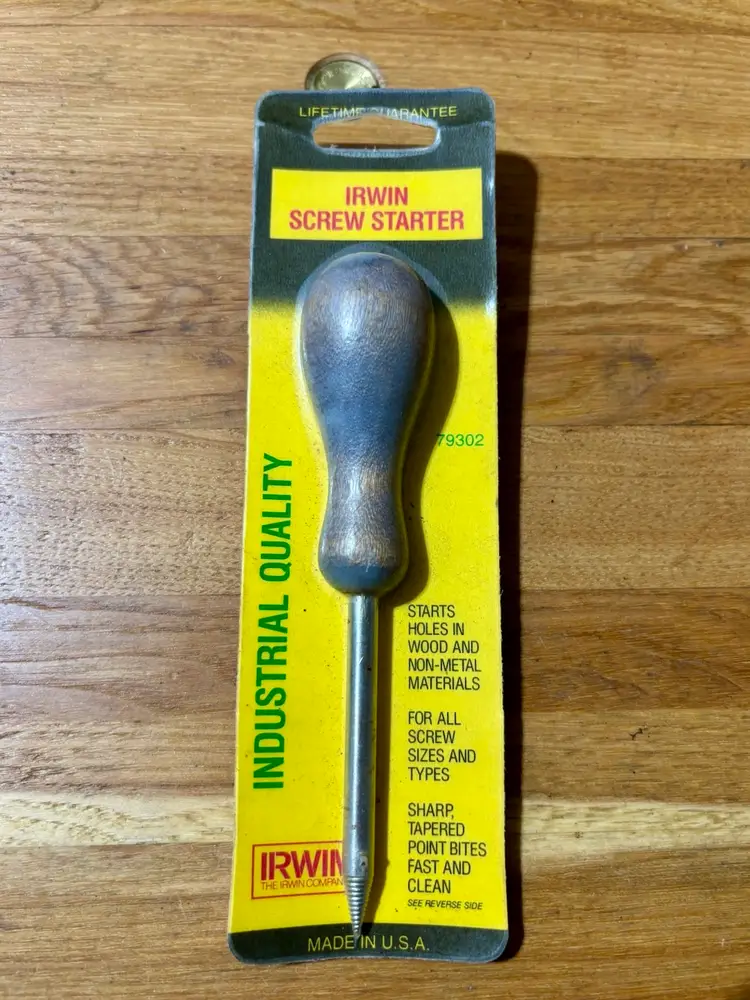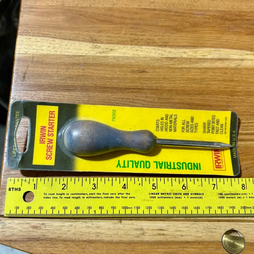 New in package, Irwin Industrial Strength Screw Starter, No. 79302. Solid hardwood handle. See pictures for details. Let me know if you have any questions.
