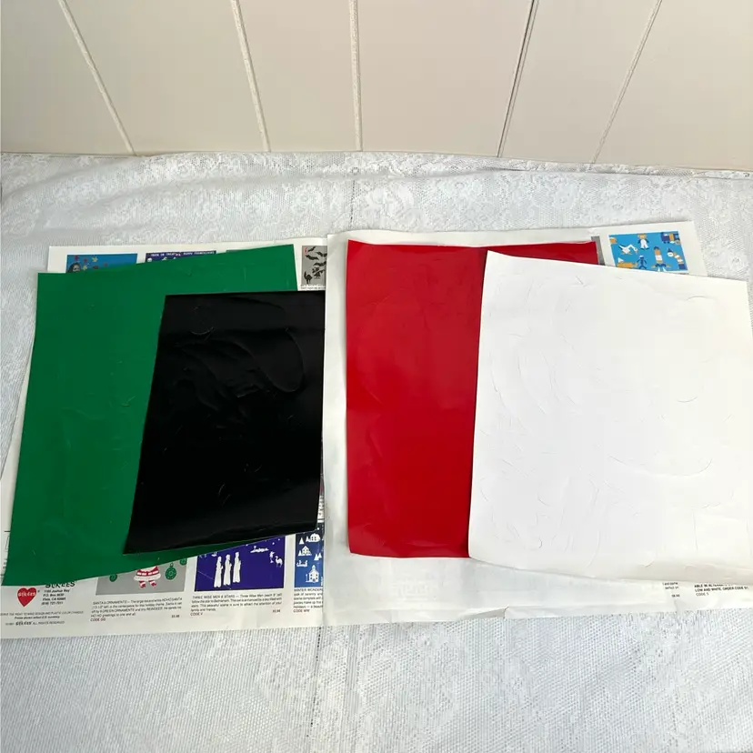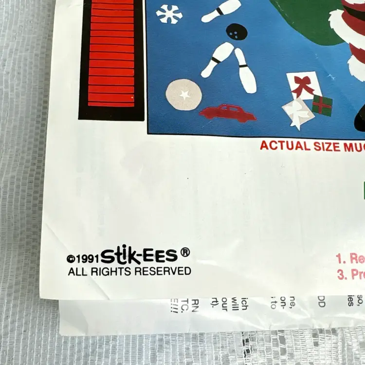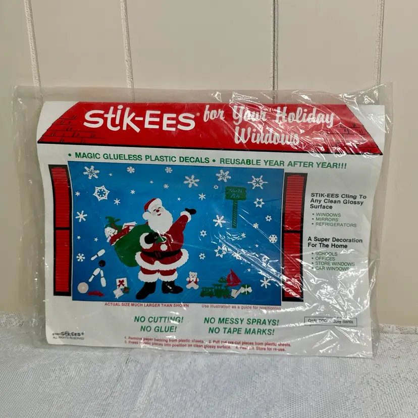 New, unused 1991 Stik-ees Jolly Santa window clings set.
