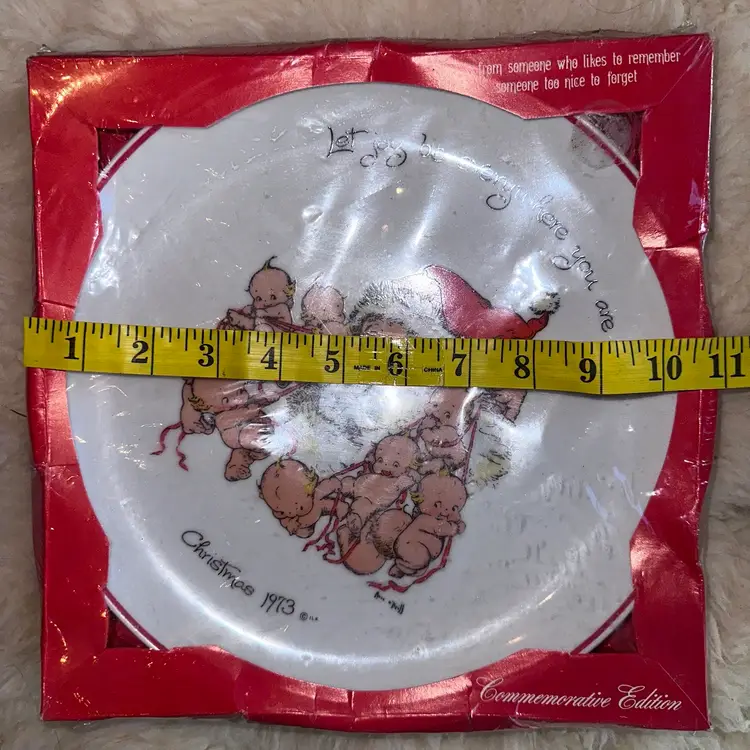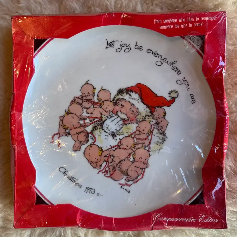 New Old Stick Unopened Vintage Christmas Commemorative Kewpie Doll Santa Claus Collectors Plate 1973. Painting From Rose O’Neill. Smoke Free Home. #kewpie #kewpiedoll #vintagechristmas #1973 #collectorsplate #retro #mcm