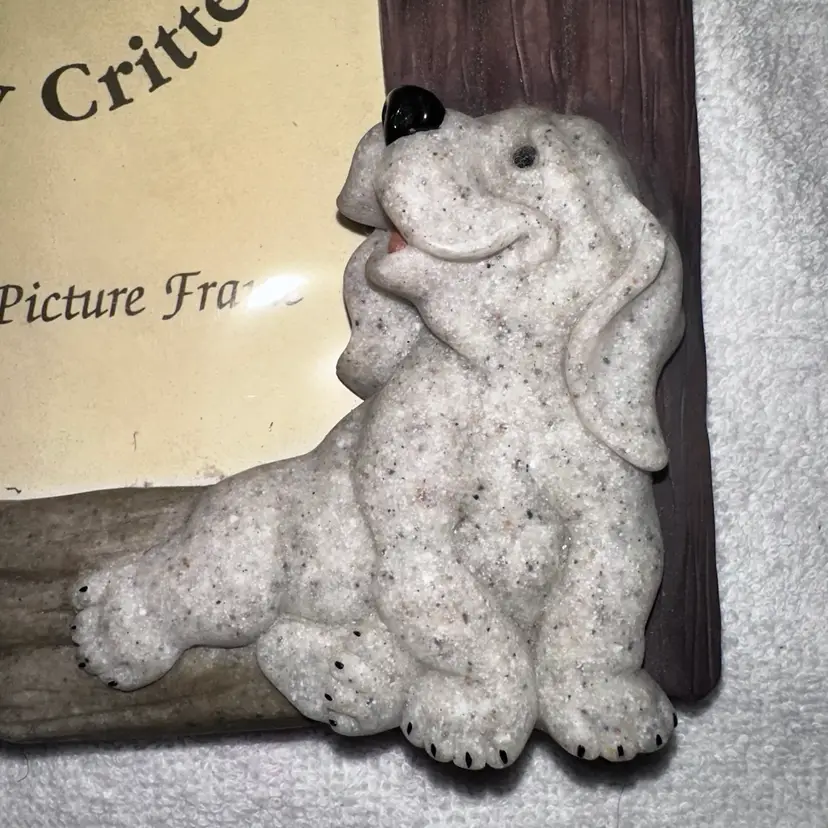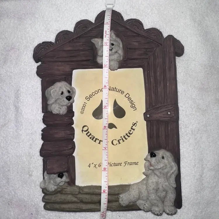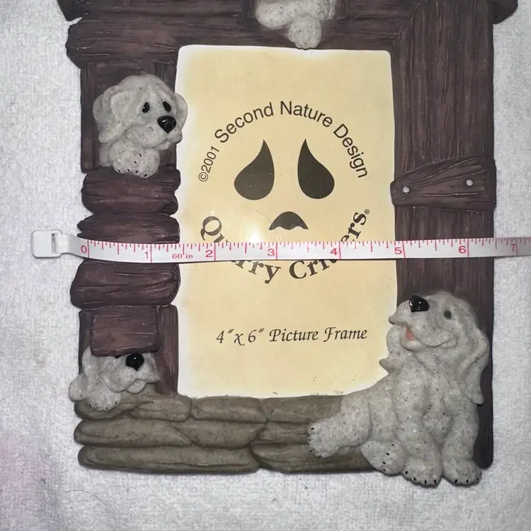 New Old Stock Unused Vintage 2001 Second Nature Design Quarry Critters 4x6 Photo Picture Frame. Adorable Resin Picture Frame Depicting Adorable Cat And Dog Quarry Critters Around Frame. Holds 4 x 6 Photos. Has Kick Stand For Table Display. Smoke Free Home. #quarrycritters #pictureframe #photoframe #vintage #retro #newoldstock