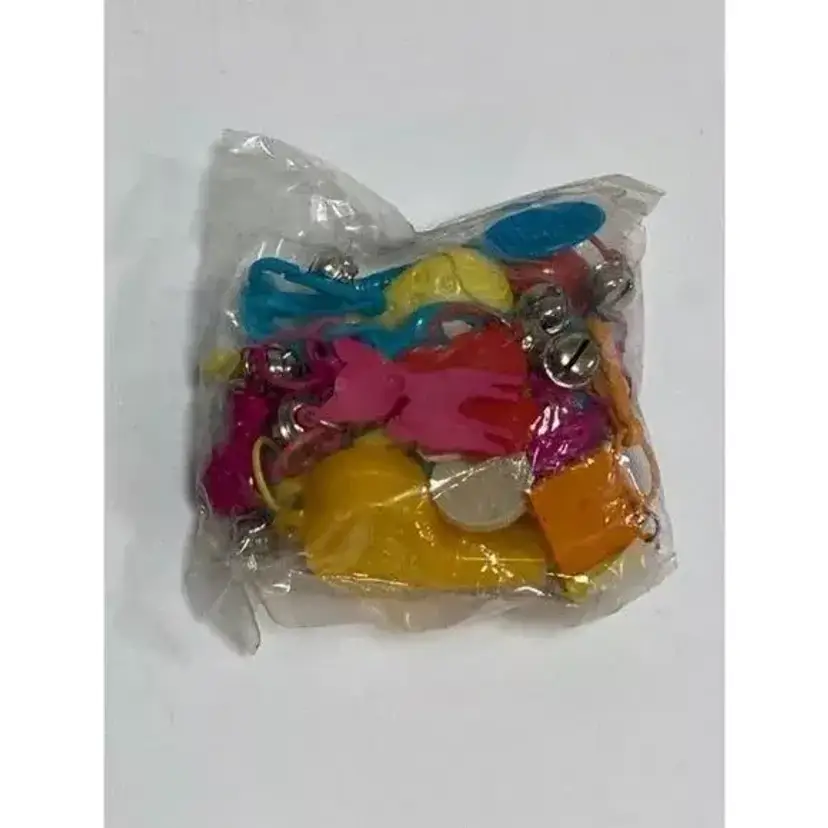 NOS New Old Stock! Deadstock! Never opened Vintage 80s Plastic Clip Bell Charms Chain Link Necklace and 12 Charms