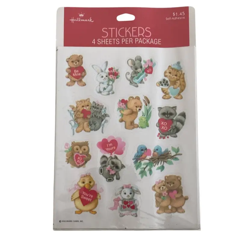 New old stock Hallmark package of stickers. Valentine teddy bears. Each package contains 4 sheets. Made in the USA.