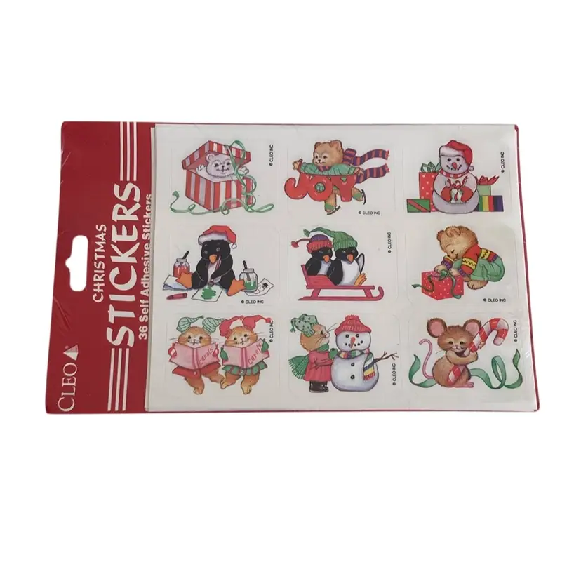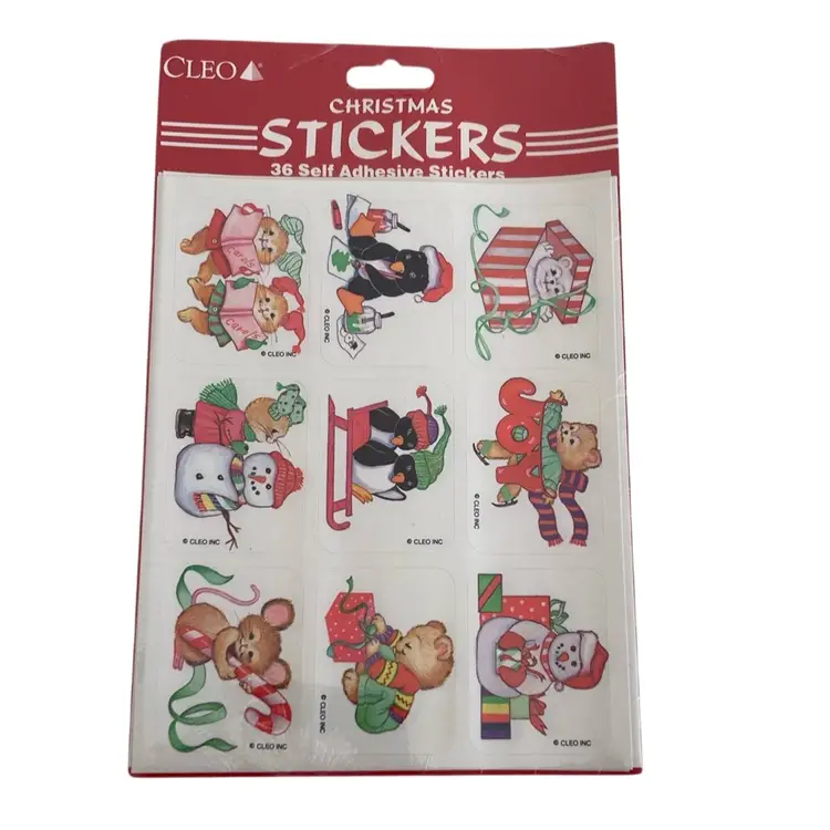 New old stock CLEO package of stickers with cute holiday animals. Each package contains 4 sheets. Made in the USA.